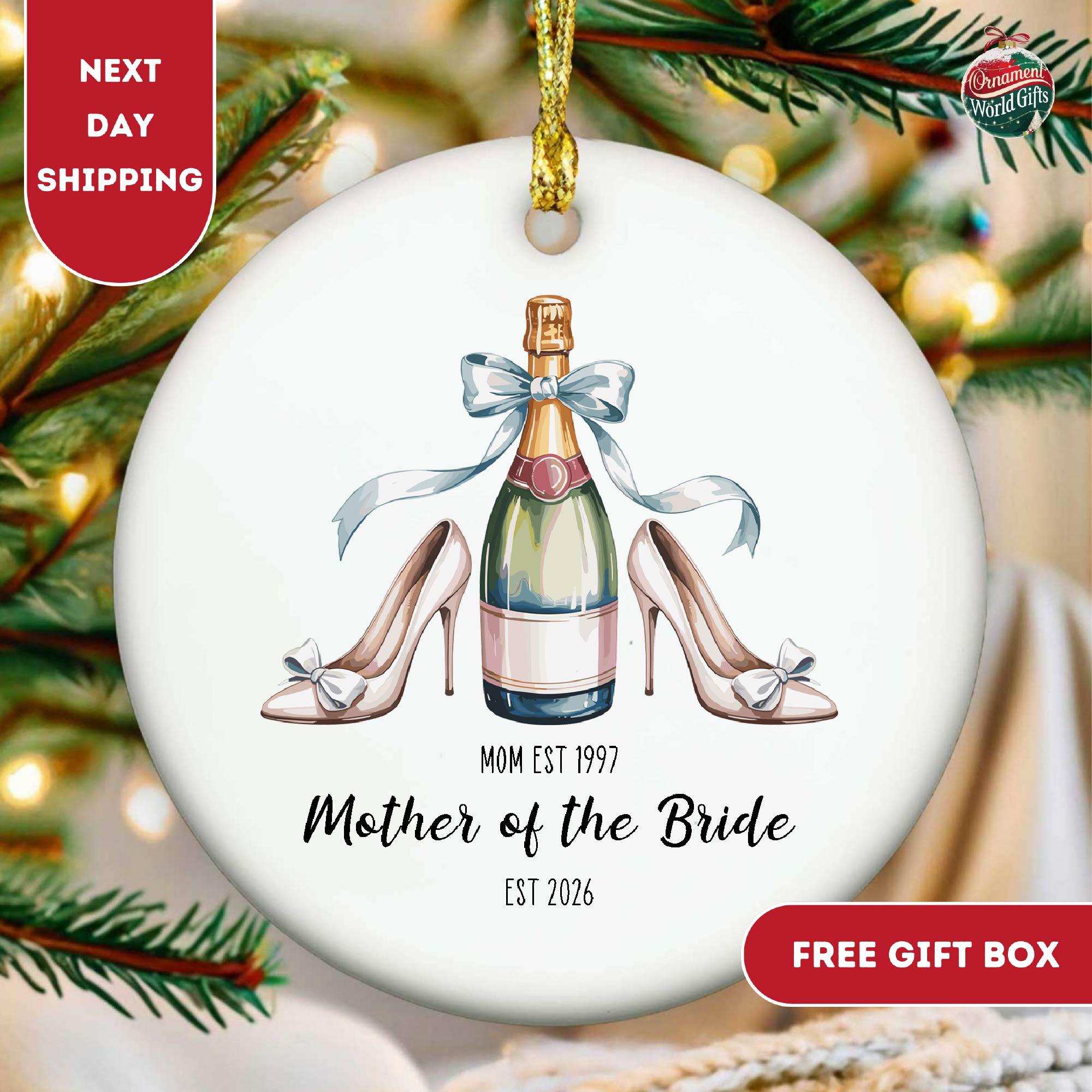 "Mother of the Bride Ornament, Personalized Wedding Gift for Mom, Champagne Bottle & Heels ...