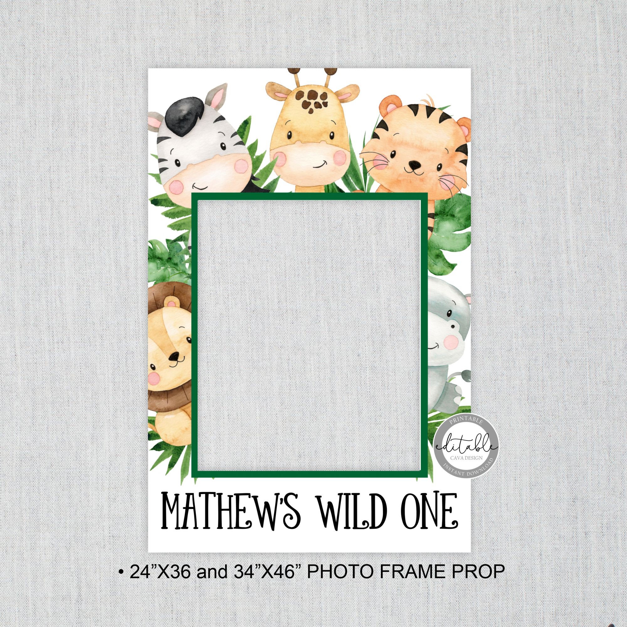 "Wild One Safari Photo Prop Frame Editable PRINTABLE sign. NO PHYSICAL PRODUCT WILL BE MAILED O...