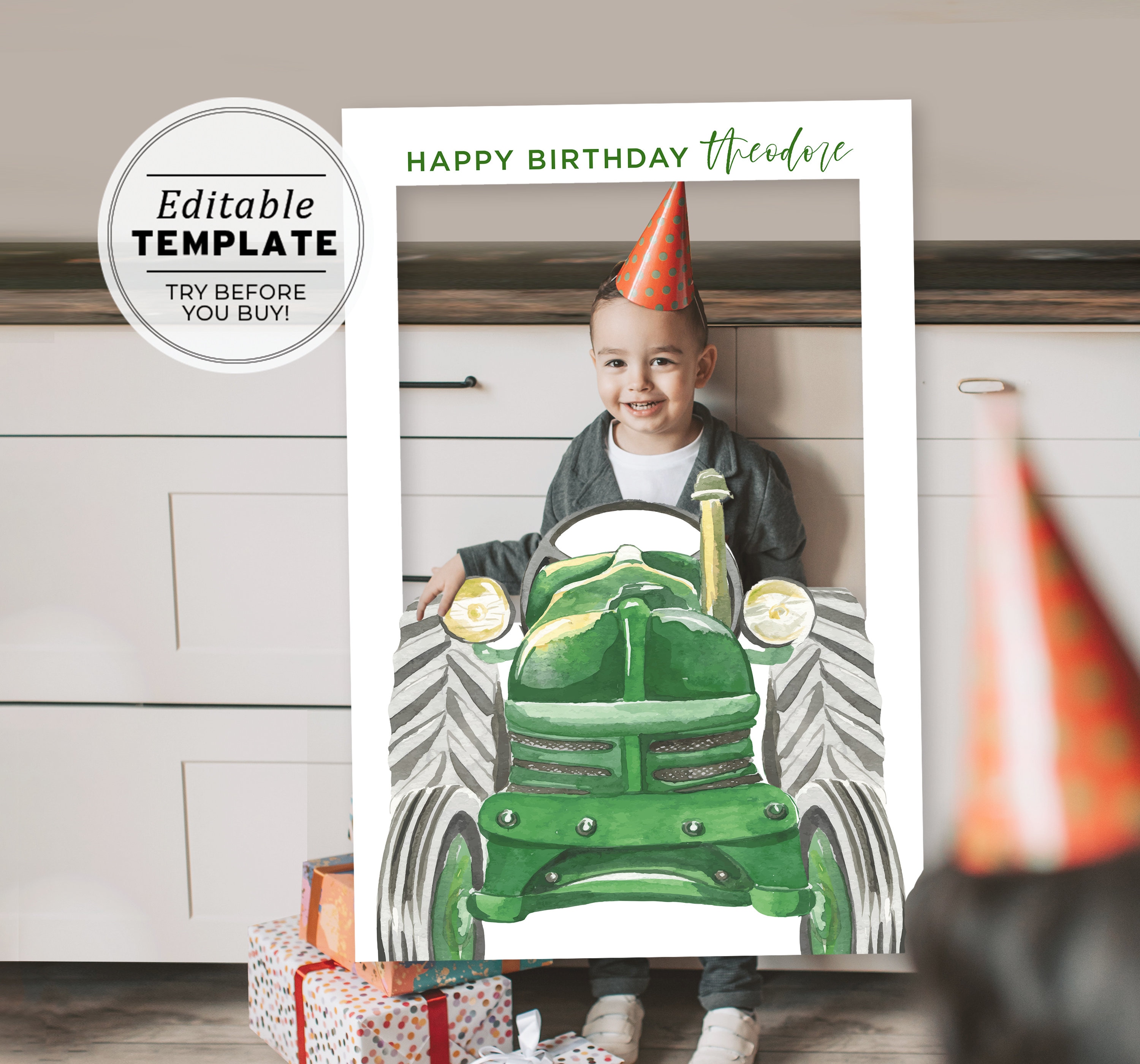 Green Tractor Photo Prop Frame Template, Farm Birthday Party Photo ...