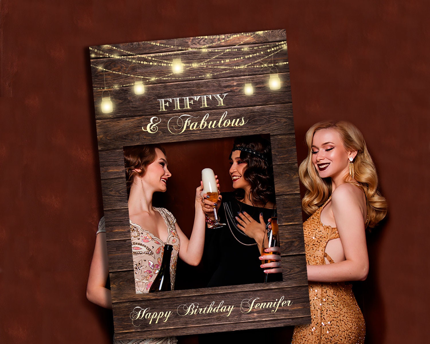 Rustic birthday photo booth frame Rustic 50th birthday photo prop f...