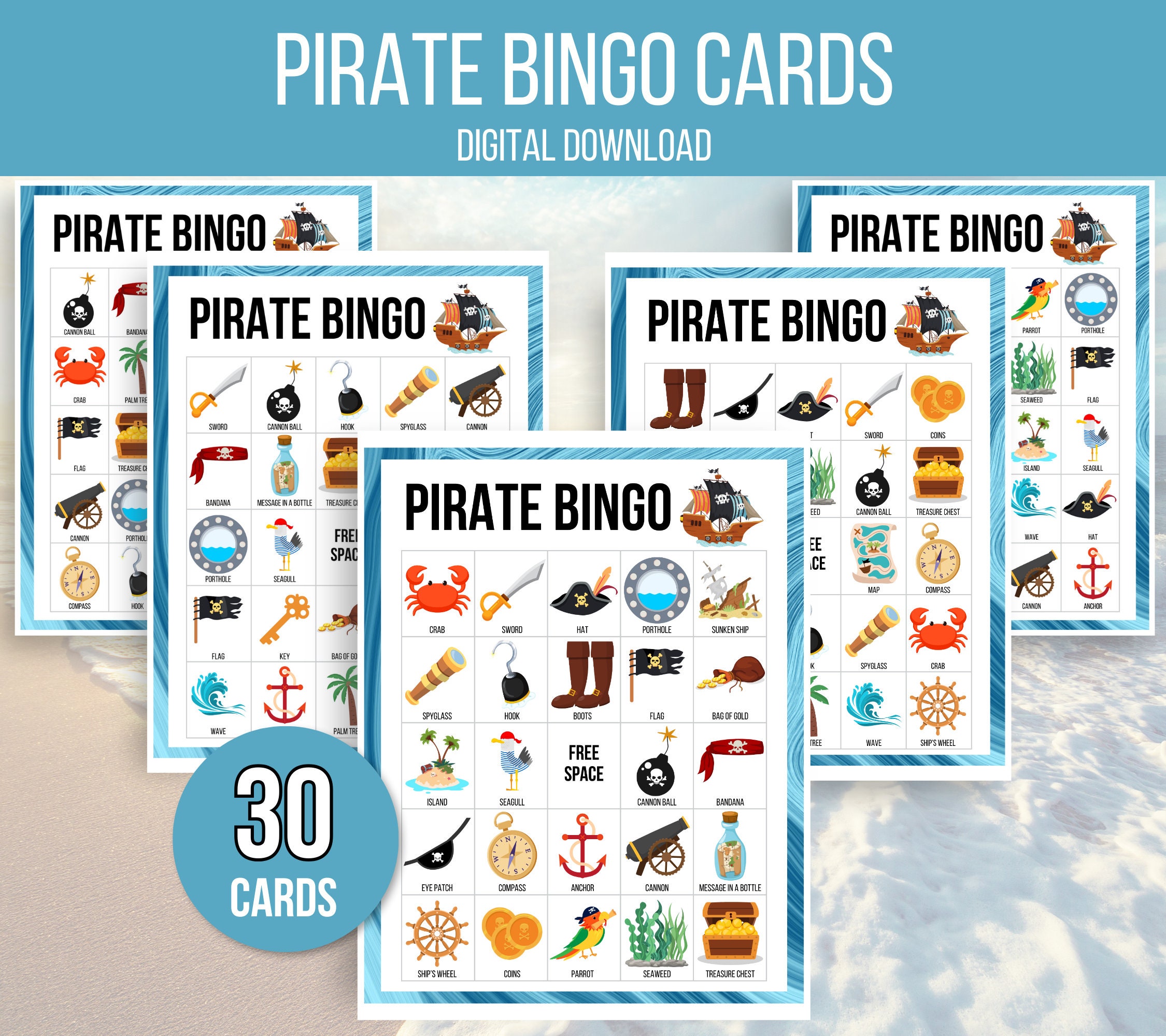 Pirate Bingo, 30 Printable Pirate Bingo Cards, Pirate Birthday, Pir...