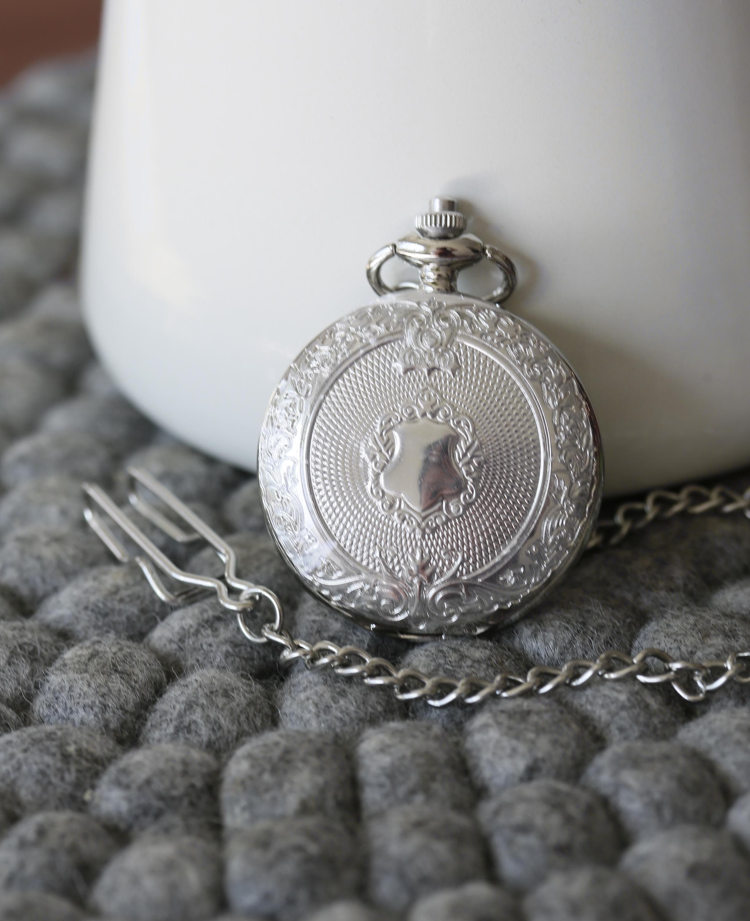 Personalized Mens Pocket Watch,Silver Quartz Pocket Watch,Steampunk...