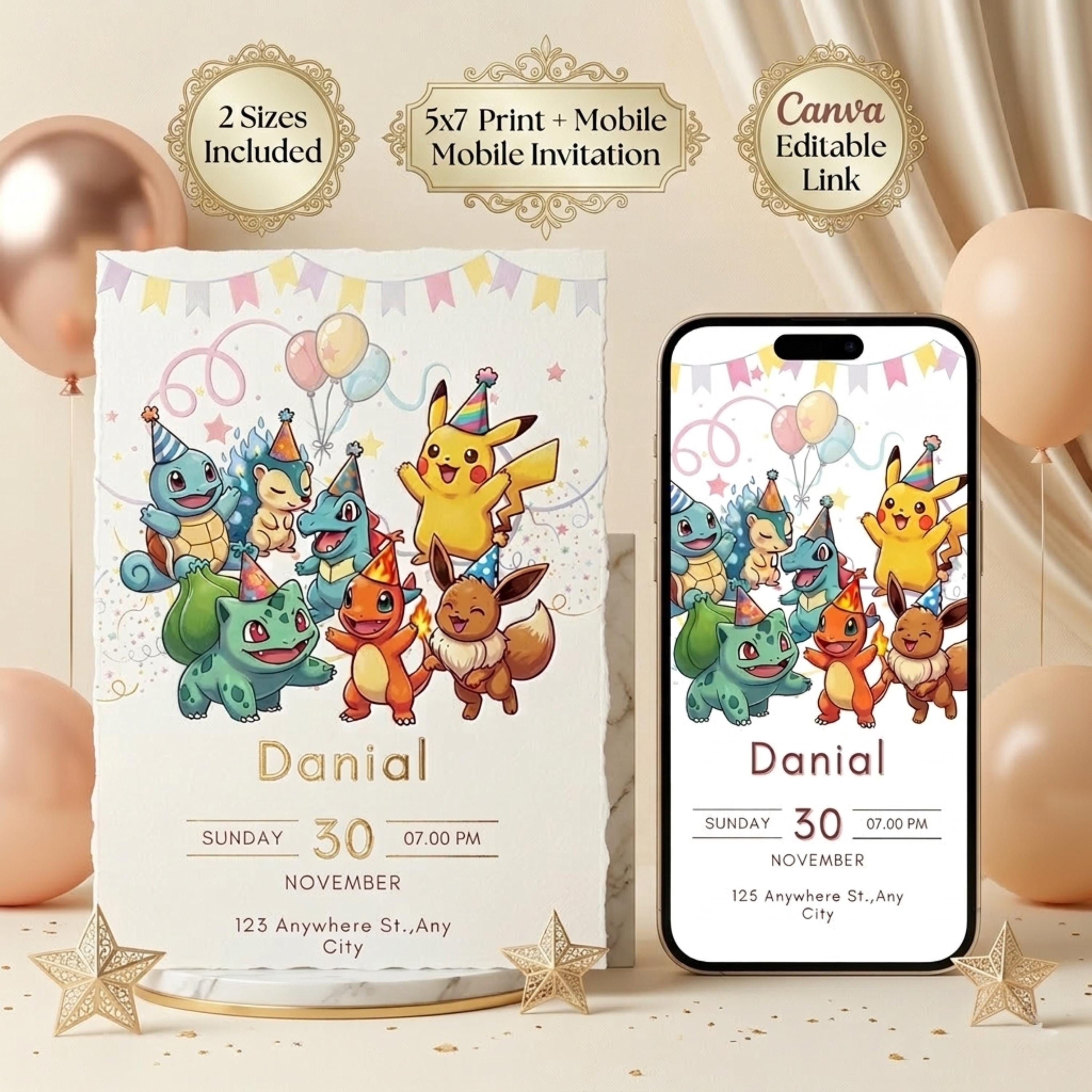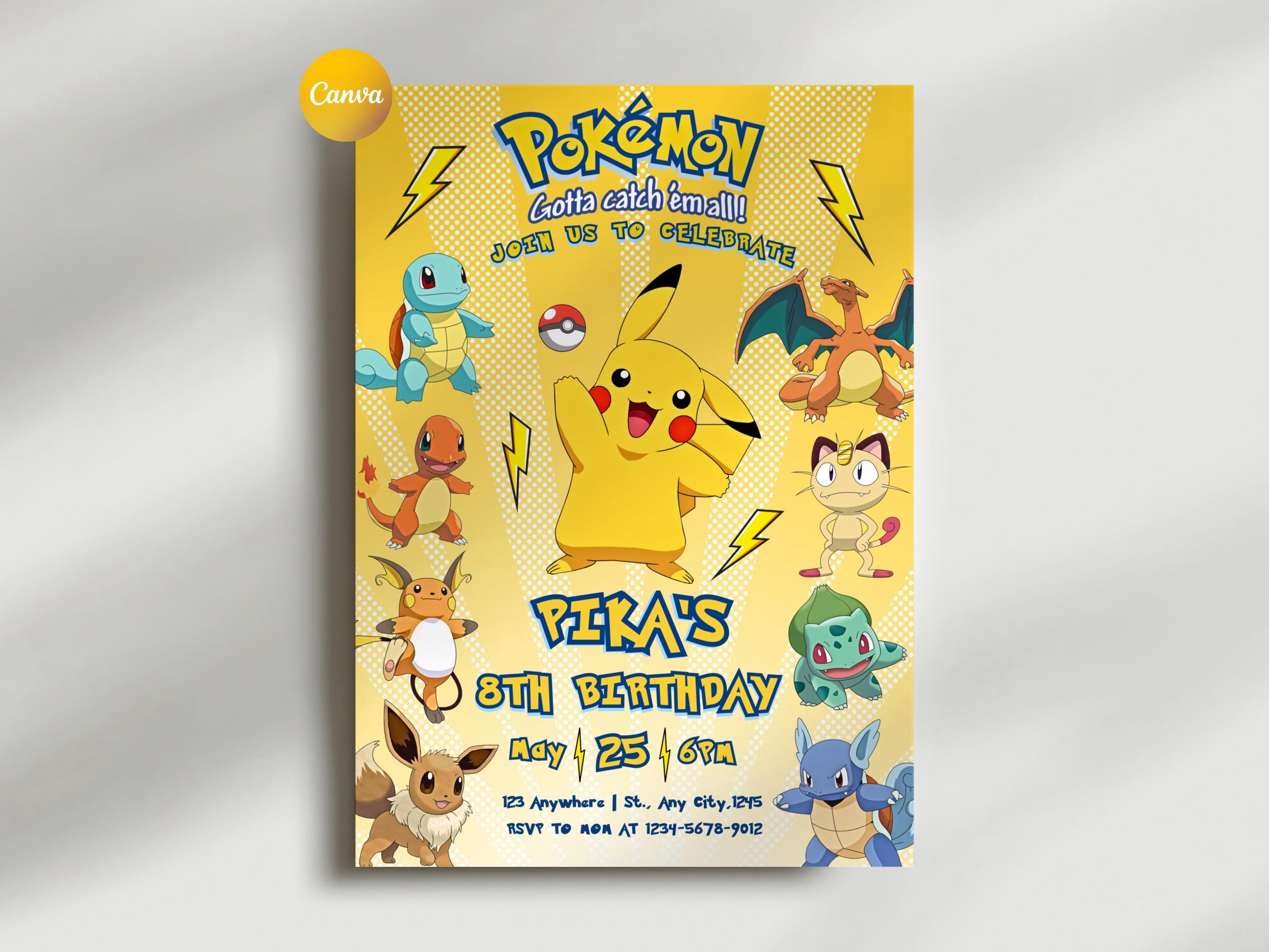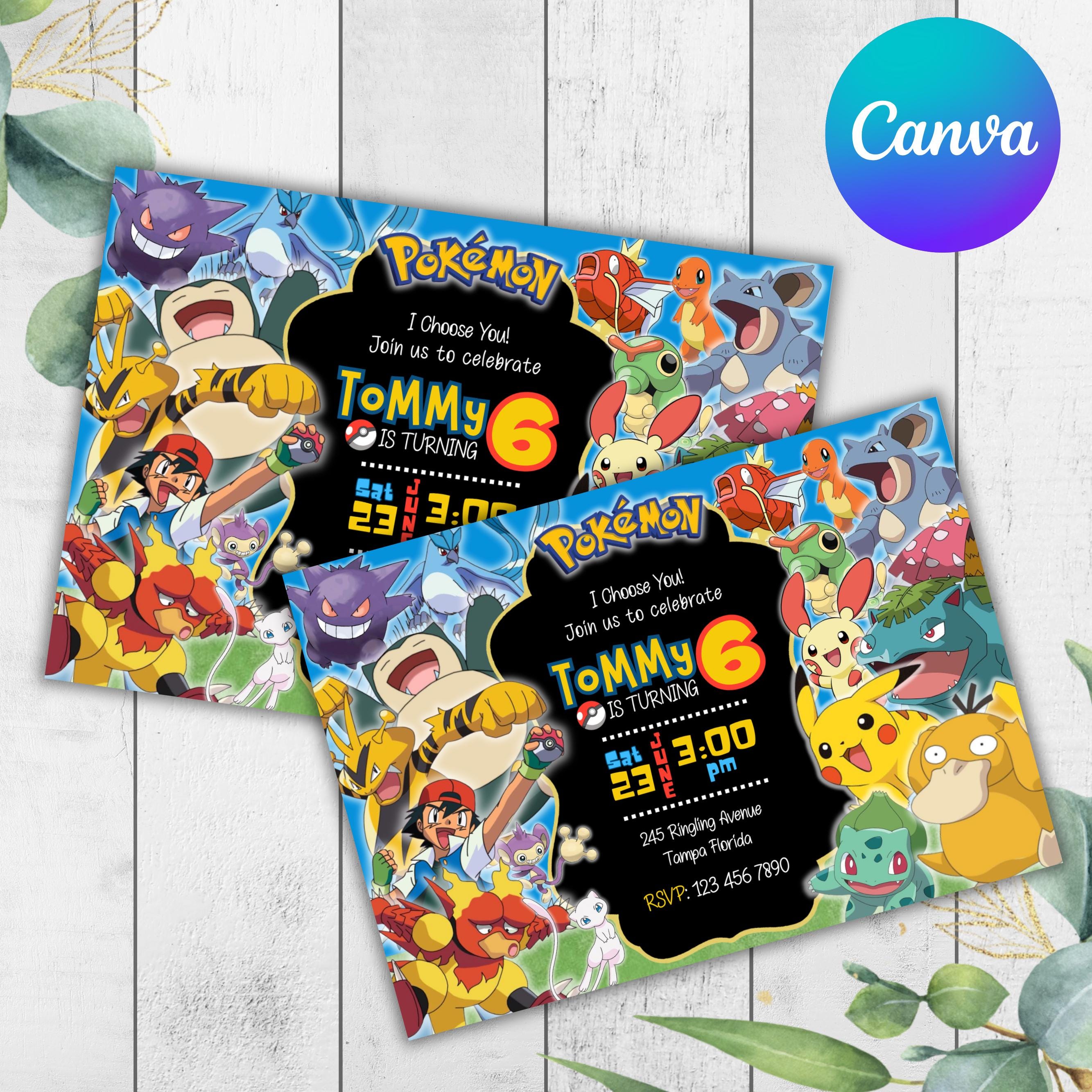 Pokemon Birthday Invitation, Pokemon Party Invite, Kids Card Template, Editable Canva Digital Downlo...