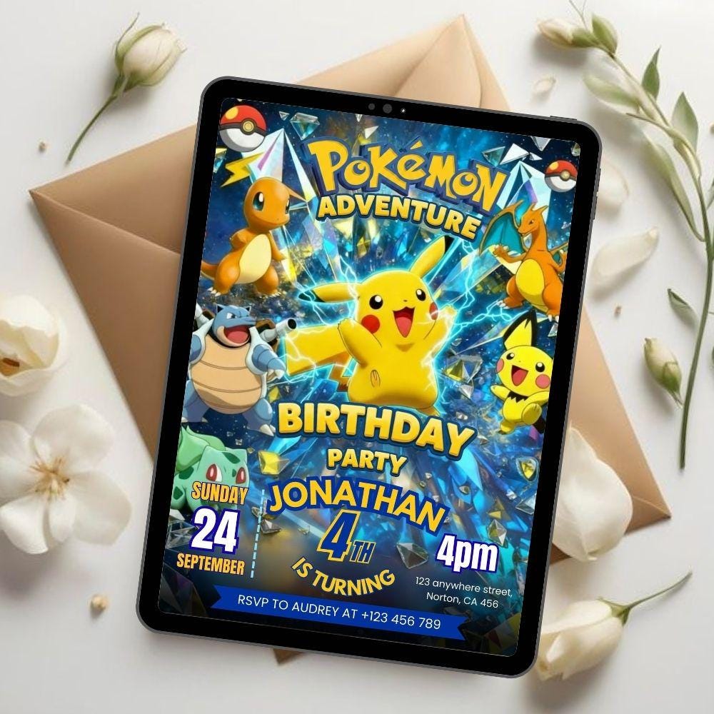 Pokemon Birthday Invitation, Pokemon Party Invite, Kids Card Templa...