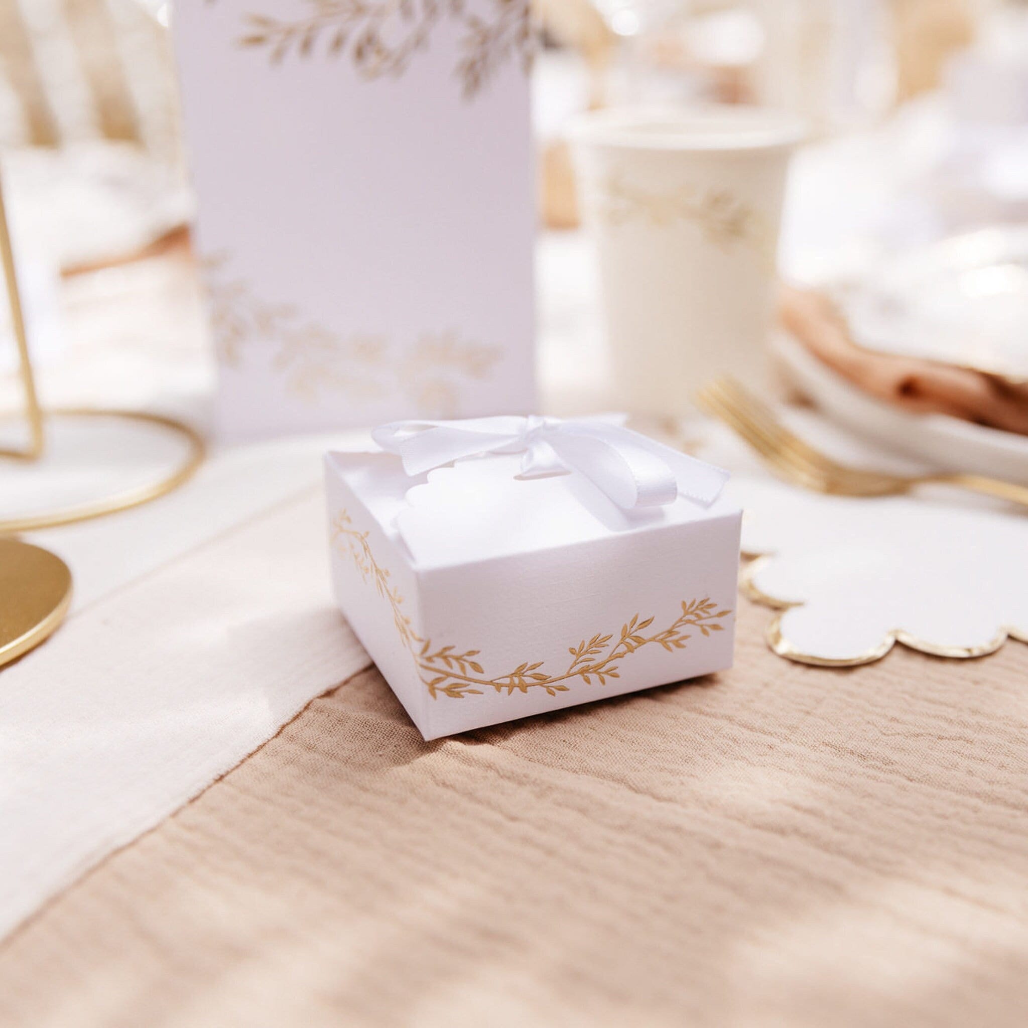 10 White and Gold Leaves Print Scalloped Treat Boxes, Thank You Box...
