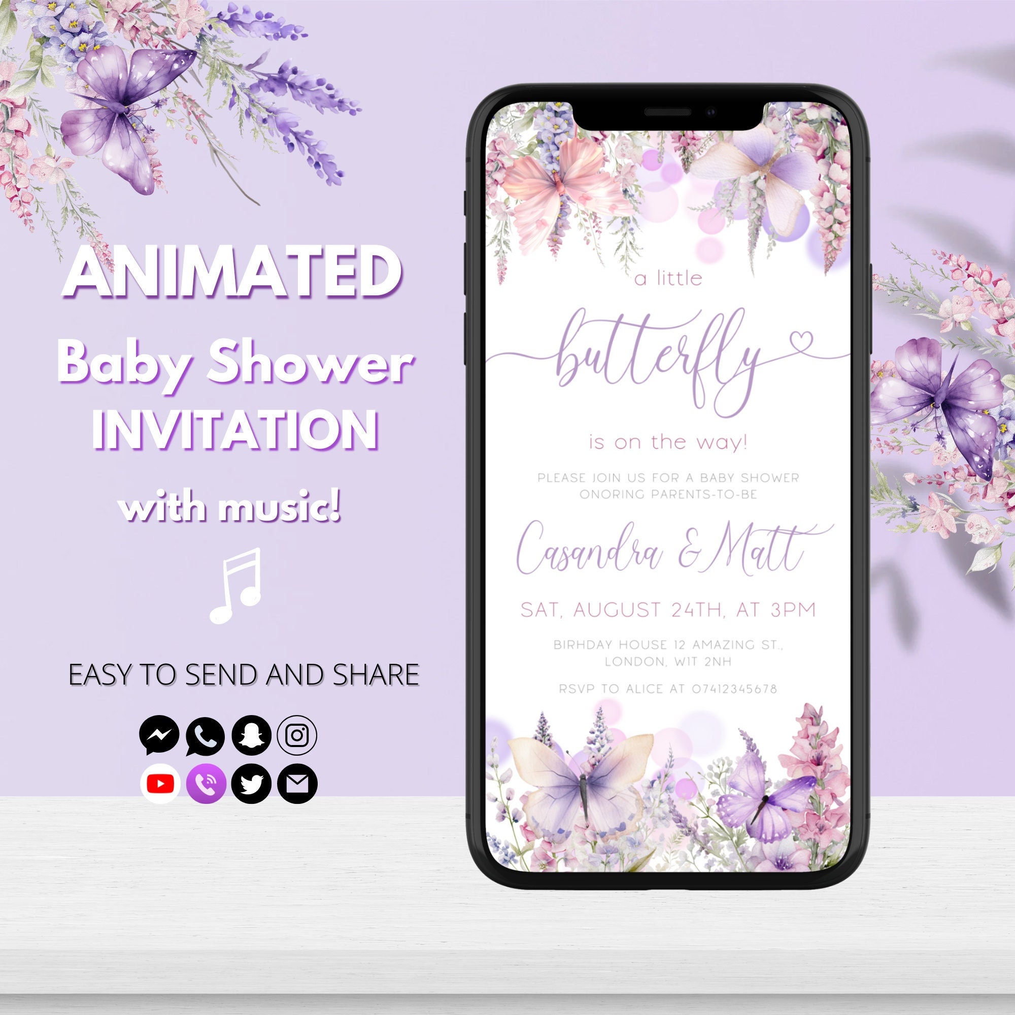 "Celebrate the arrival of your little one in style with our butterfly video invite for your bab...