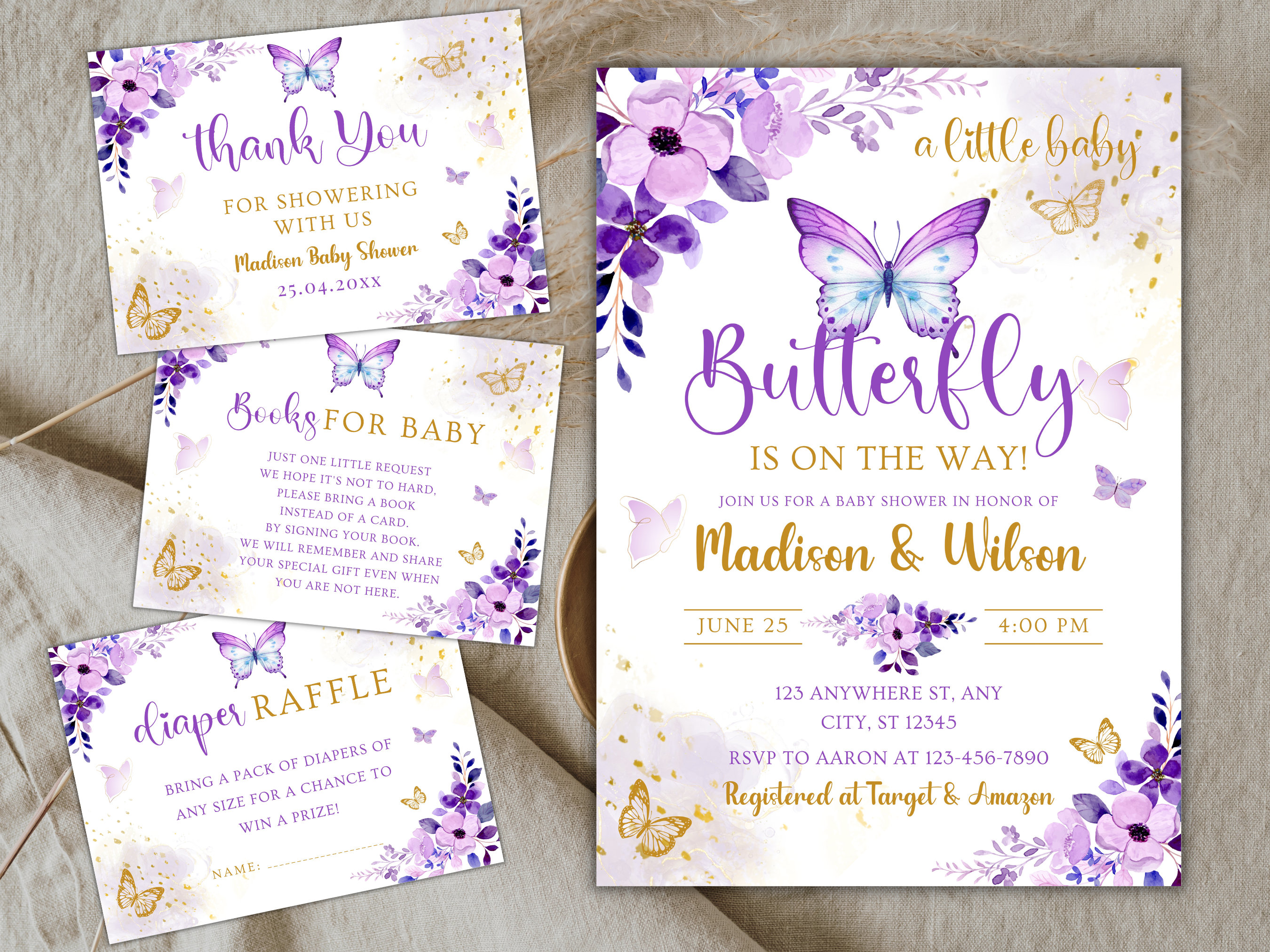 Purple Butterfly Baby Shower Invitation Set, Butterfly Baby Shower ...