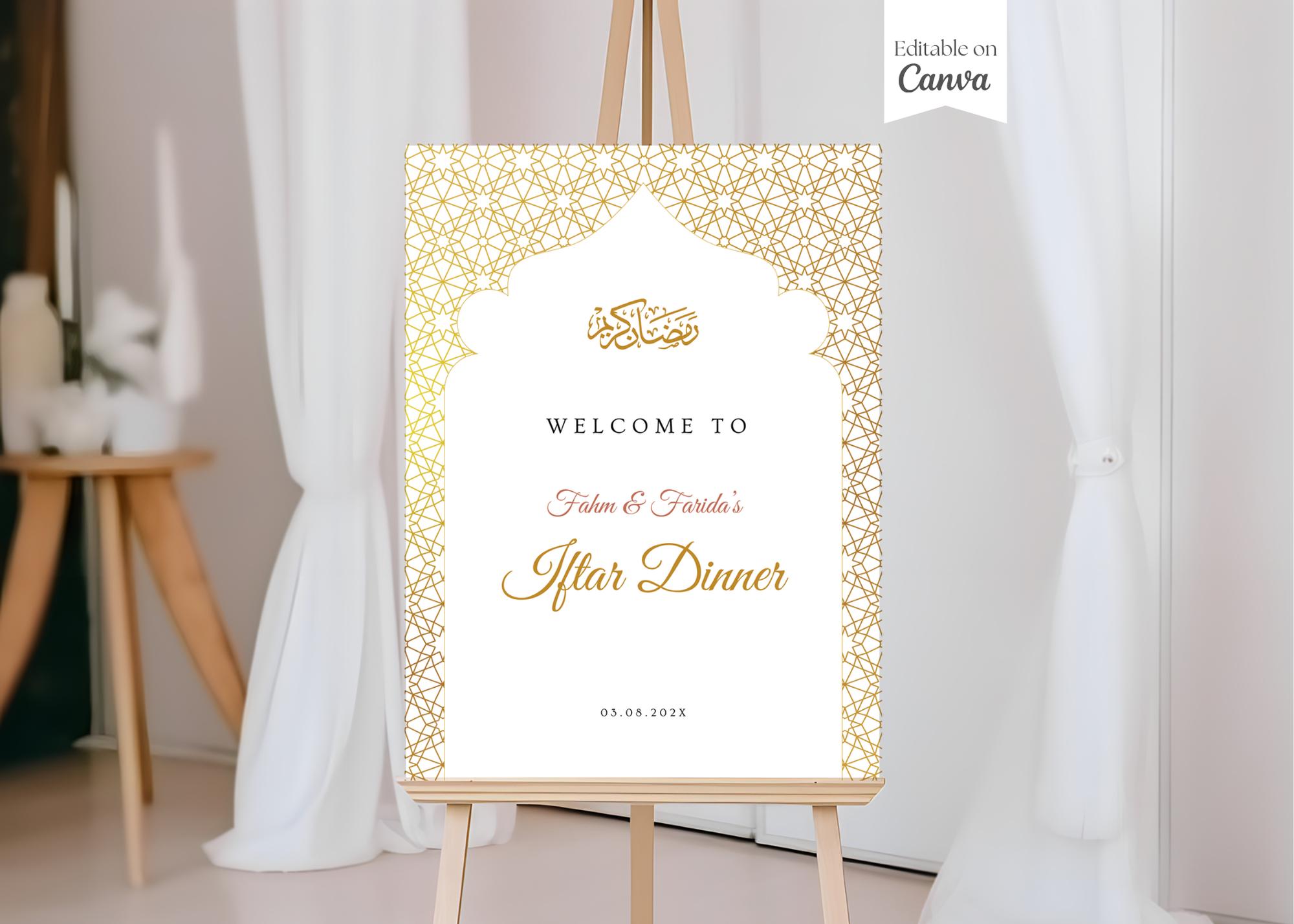 Iftar Welcome Sign, Editable Eid Dinner Poster, Ramadan Kareem Deco...
