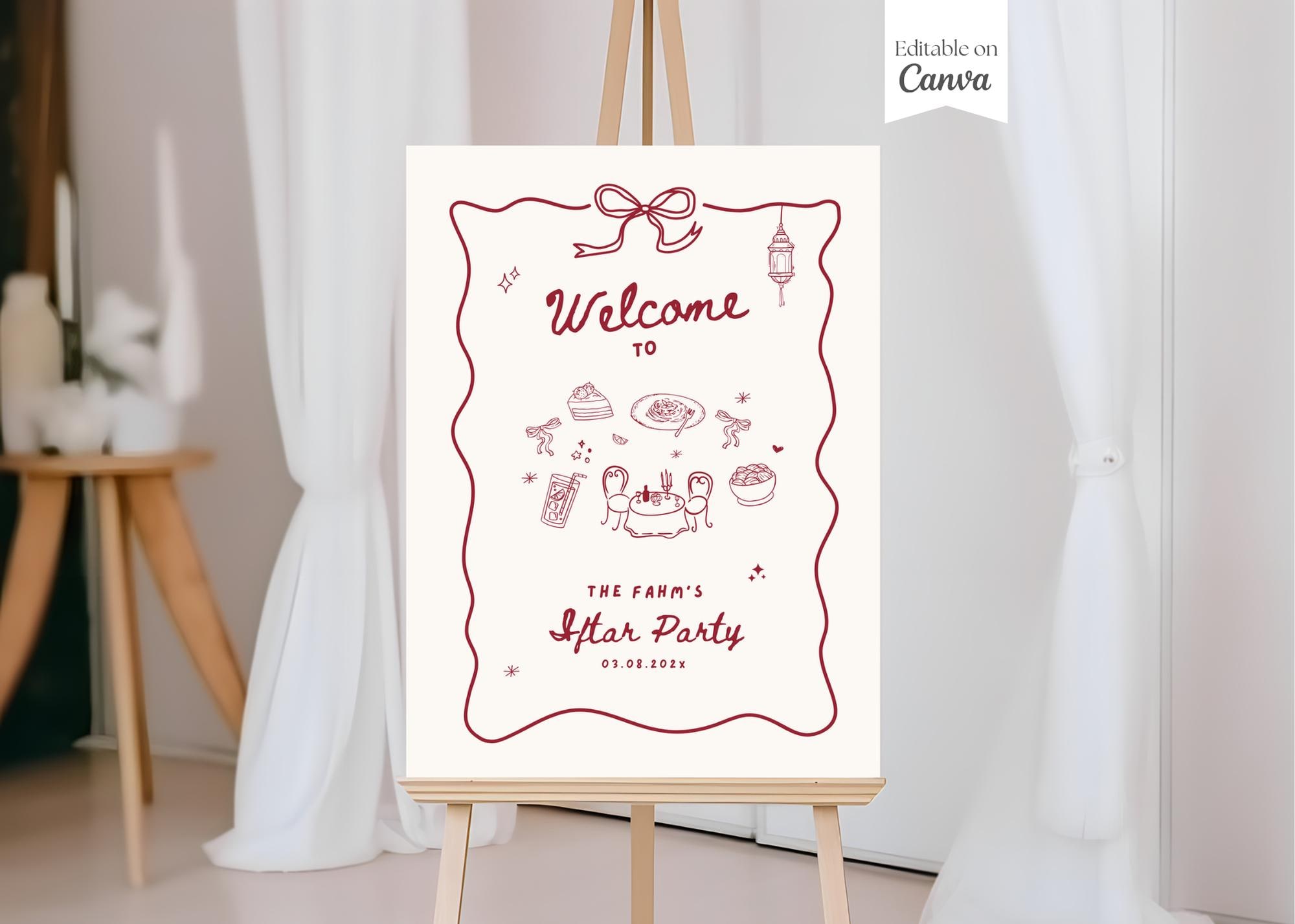 "Welcome guests to your Iftar or Eid celebration with a beautifully designed, editable welcome ...