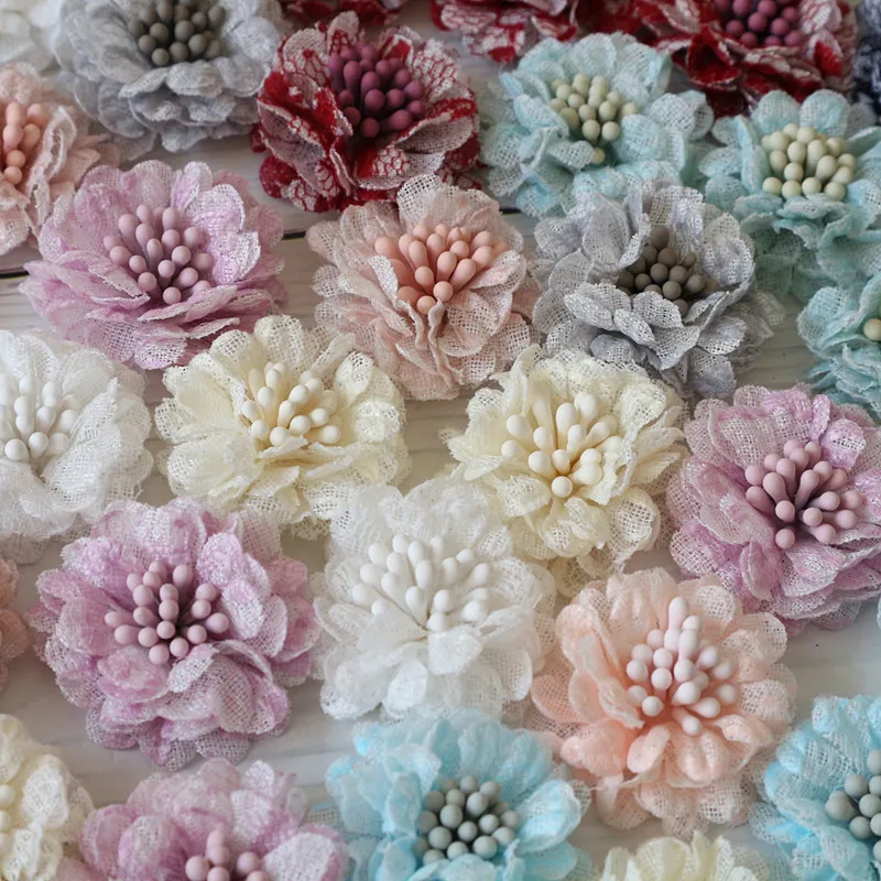 10PCS/Lot 3.5CM Handmade Pearl Center Fabric Artificial Flowers For...