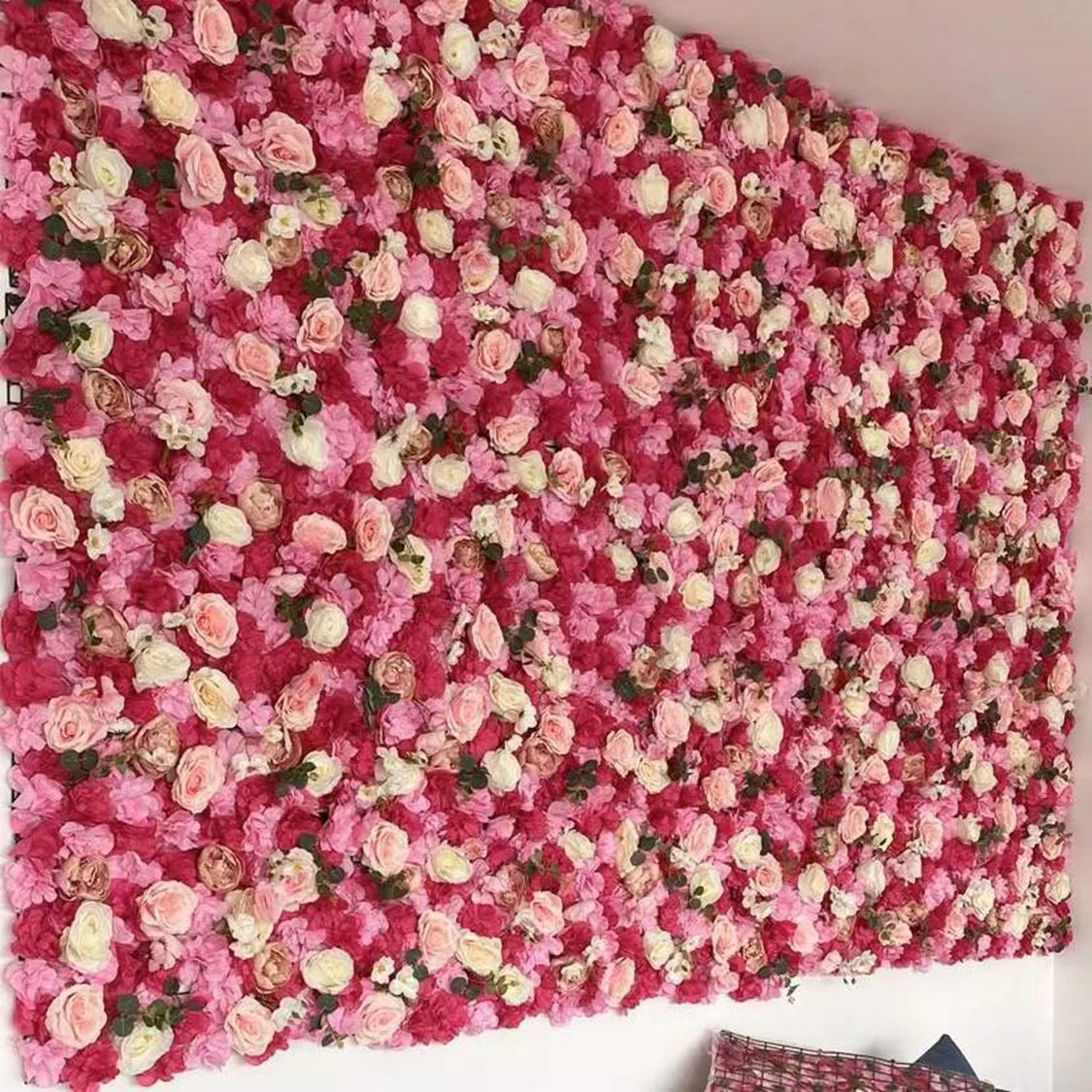 Flower Wall Panel Floral Backdrop Silk Artificial Rose Wall Faux Fl...