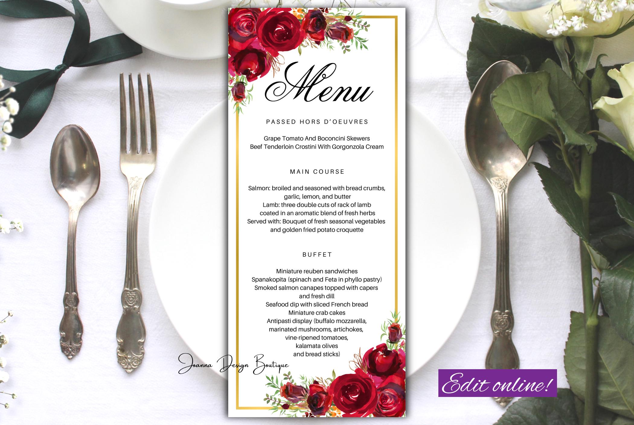 Red Rose Wedding Invitation set, Red Rose RSVP, Dark Red floral, Re...