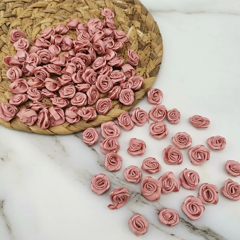 (100 Pcs/pack) 10*10mm Fresh Pink Ribbon Flowers Small Size High Quality Satin Ribbon Flowers Craft ...