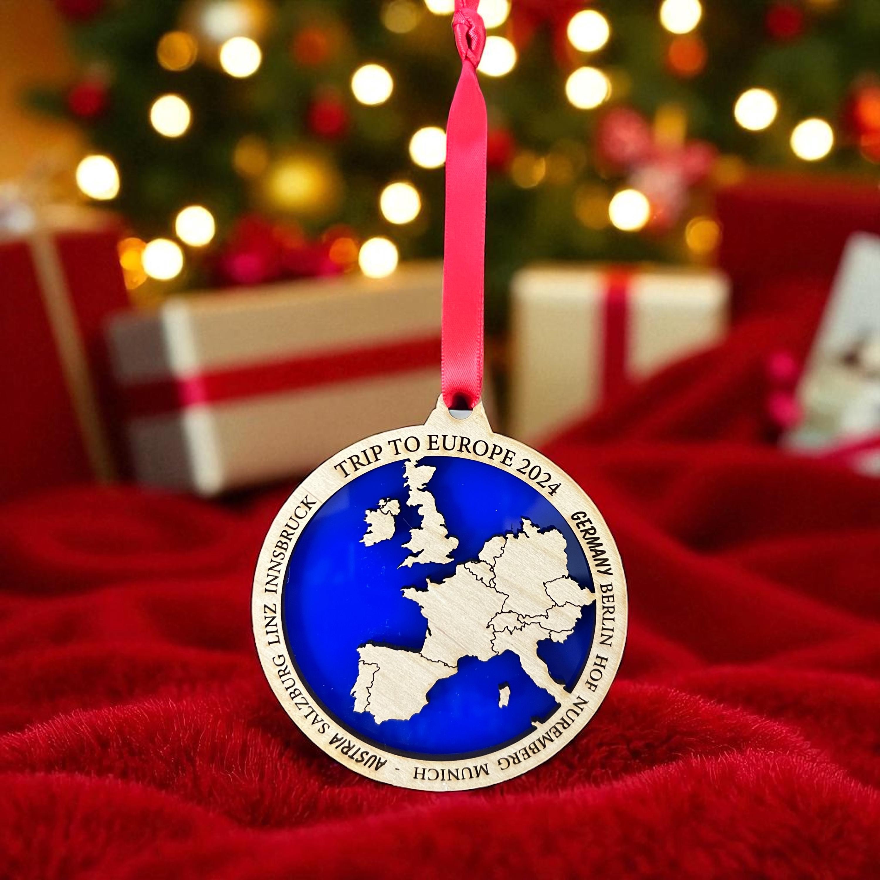 "Personalized Europe Ornament, Europe Christmas Ornament, European Ornament, Travel destination...