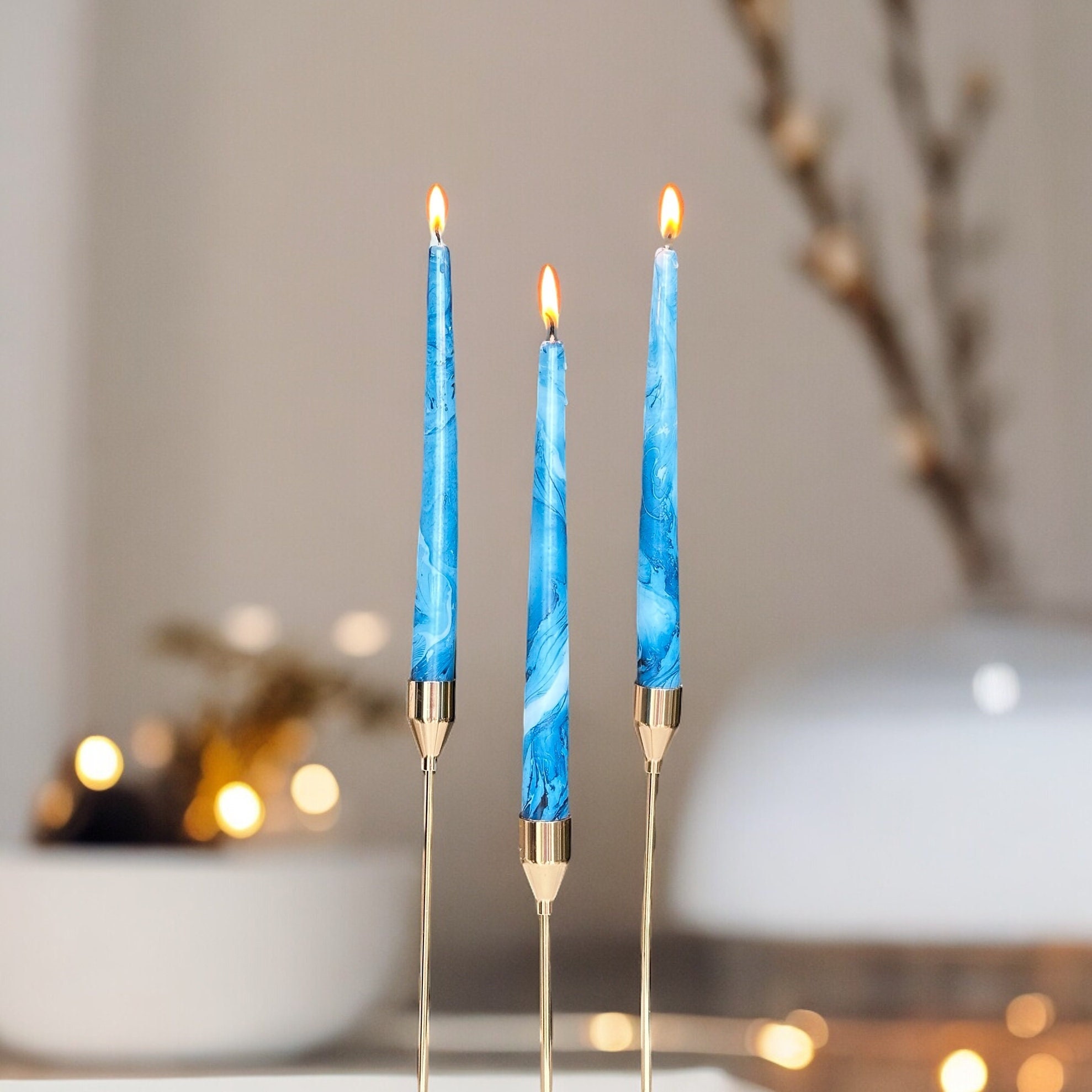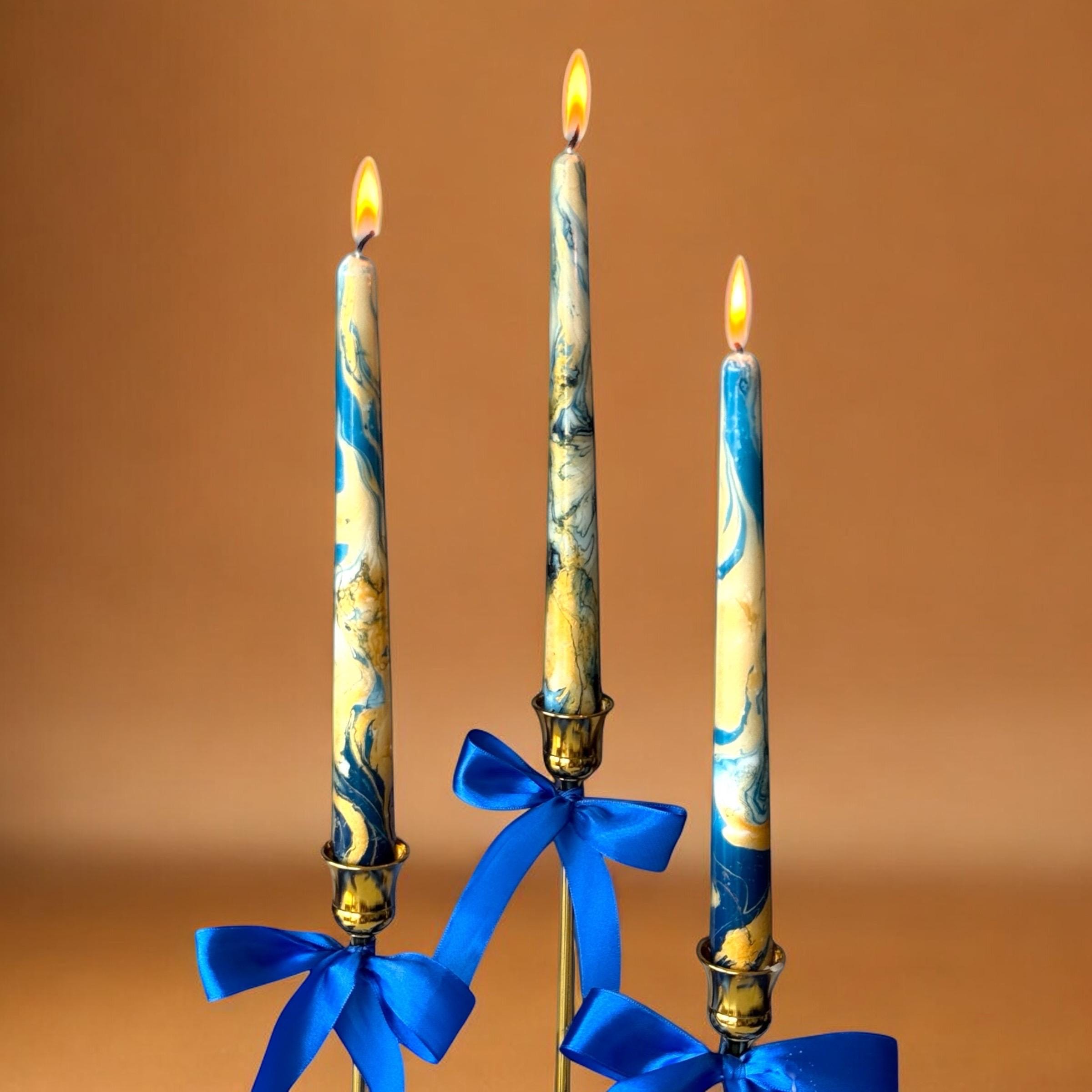 Gold Royal Blue marble candles,tall taper candle set,dinner candles...