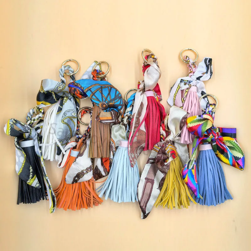 Colorful Silk Scarf Tassel Pendant Silk Ribbon Bow Tassel Korean PU...
