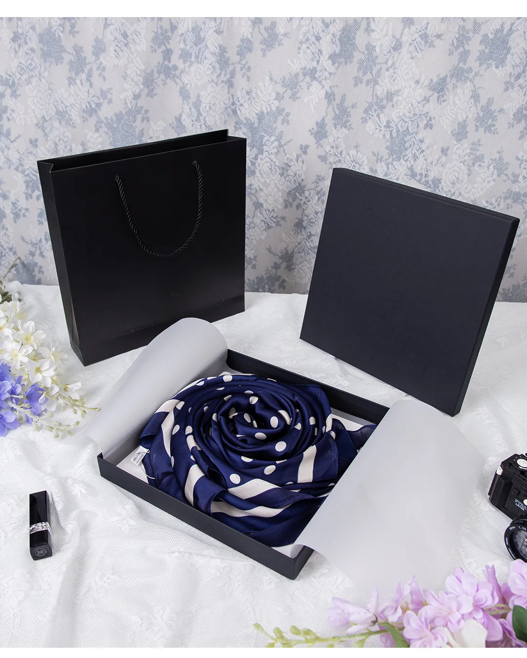 Custom Printed Scarves Shawl Eye Mask Black Hard Gift Box Silk Scar...
