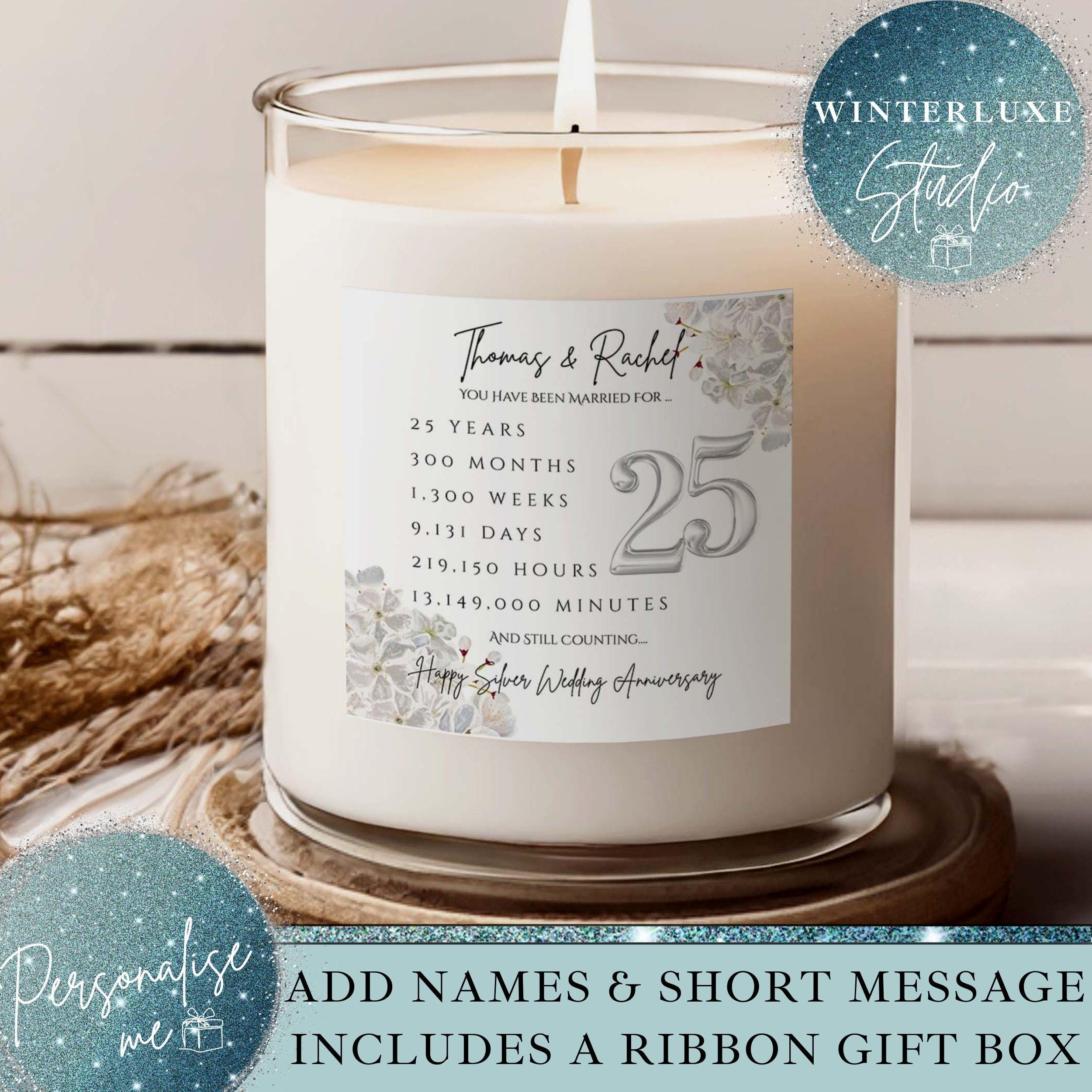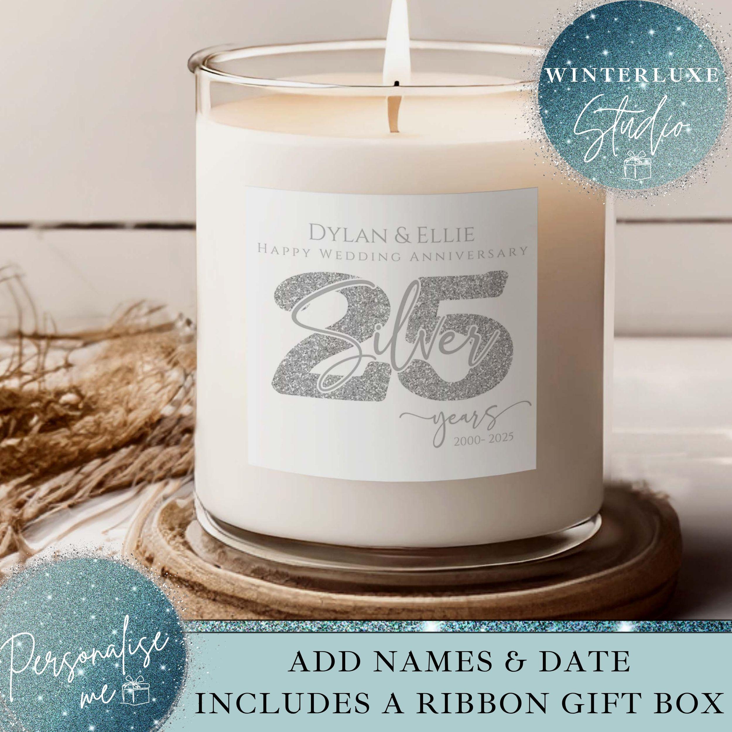 Personalised 25th wedding anniversary candle gift set, silver Anniv...