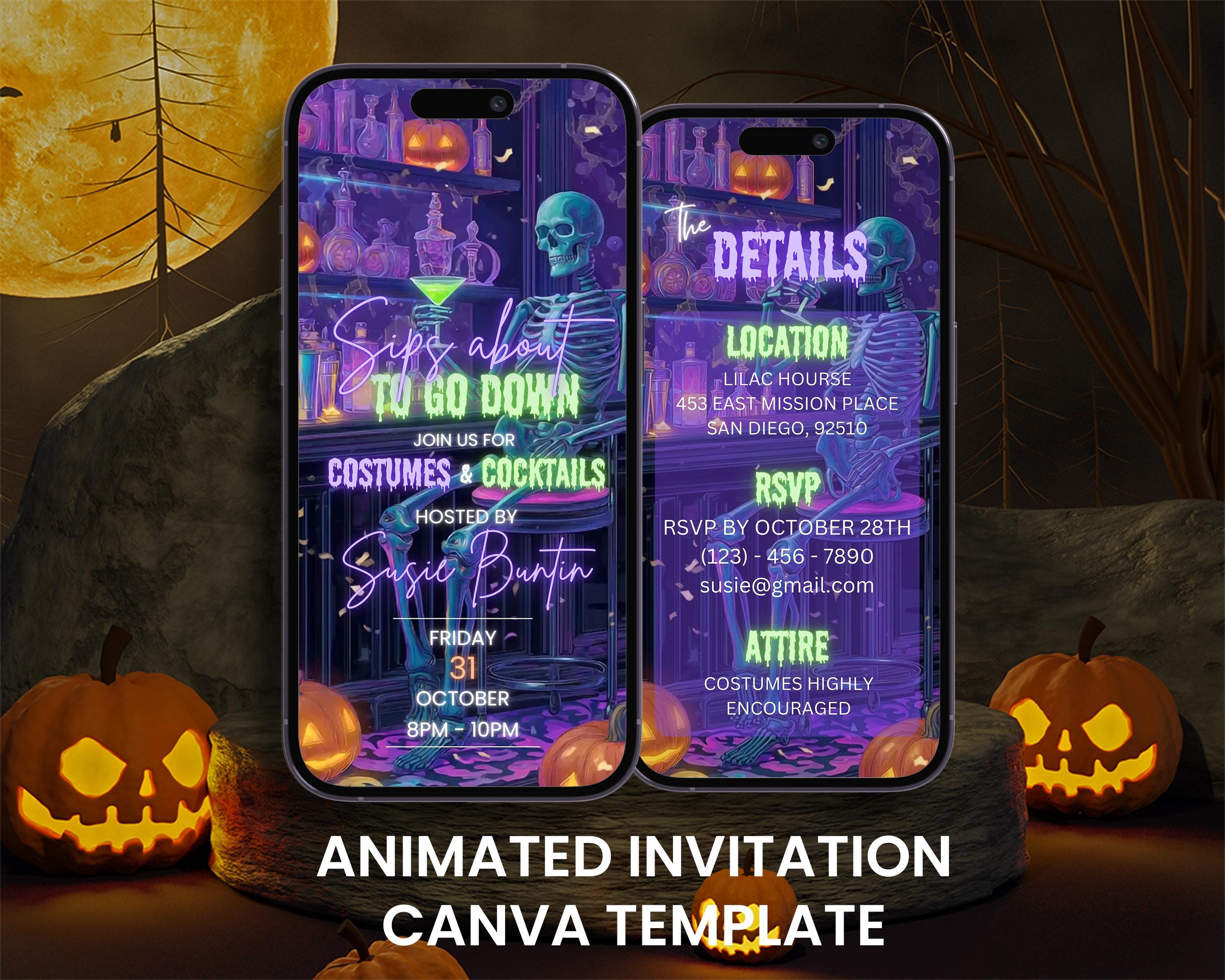 Skeleton Costume Cocktail Halloween Party Video Invitation: Animate...