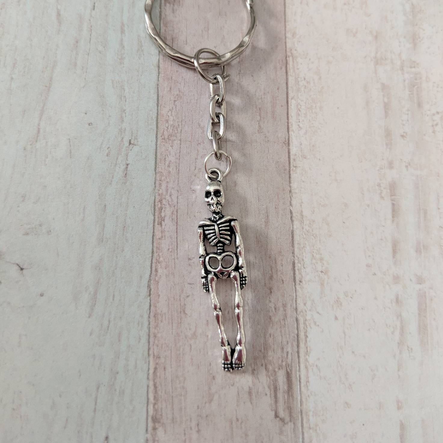 Skeleton keyring, Halloween keychain, skeleton gift, gothic keyring...