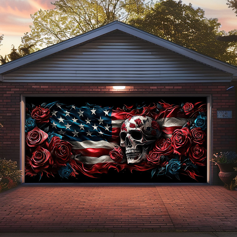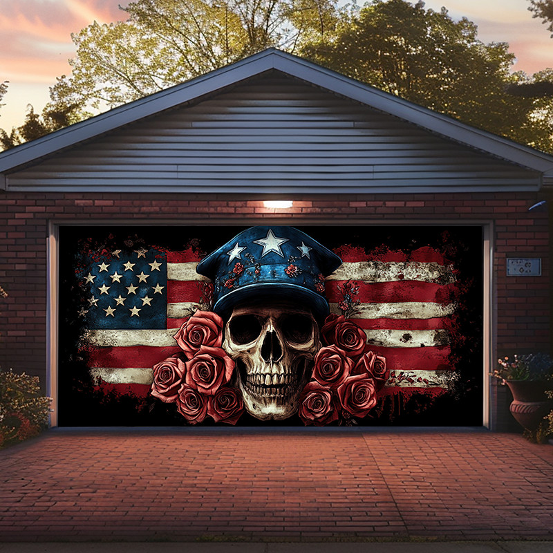 Door Decorations Garage Door Cover Skull 4th of July Independence D...