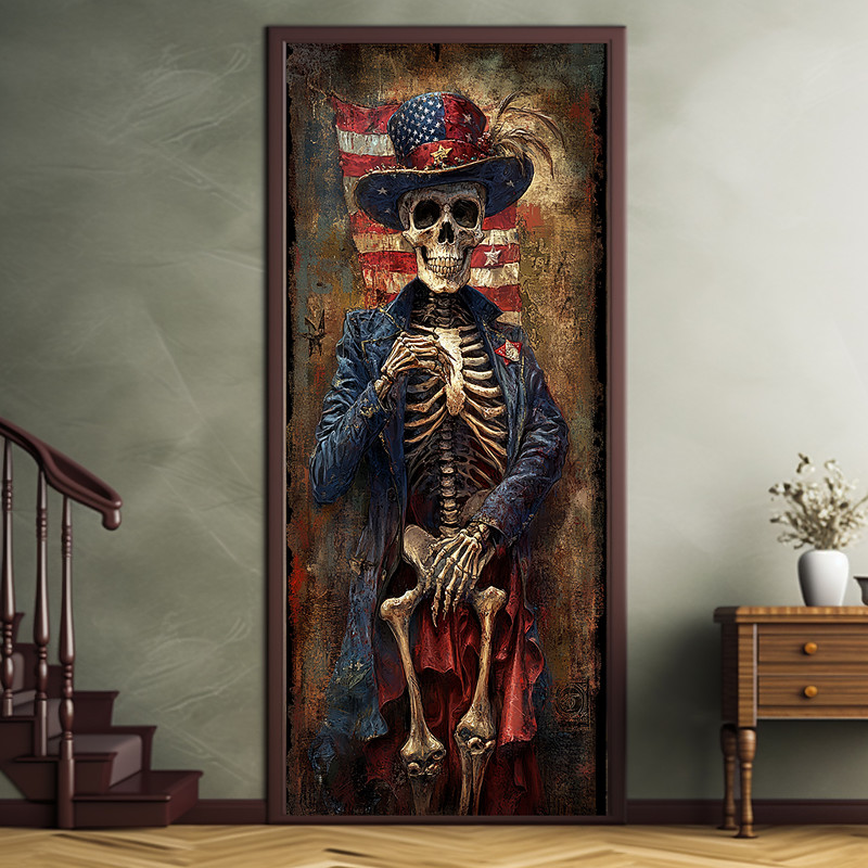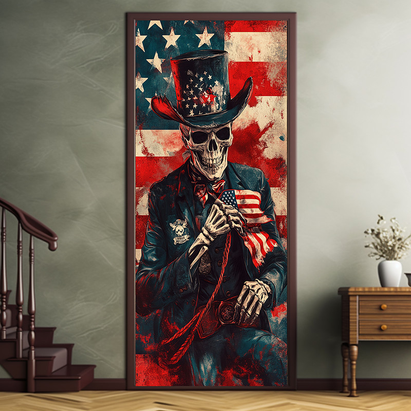 Skull Door Decorations Door Covers 4th of July Patriotic Independen...