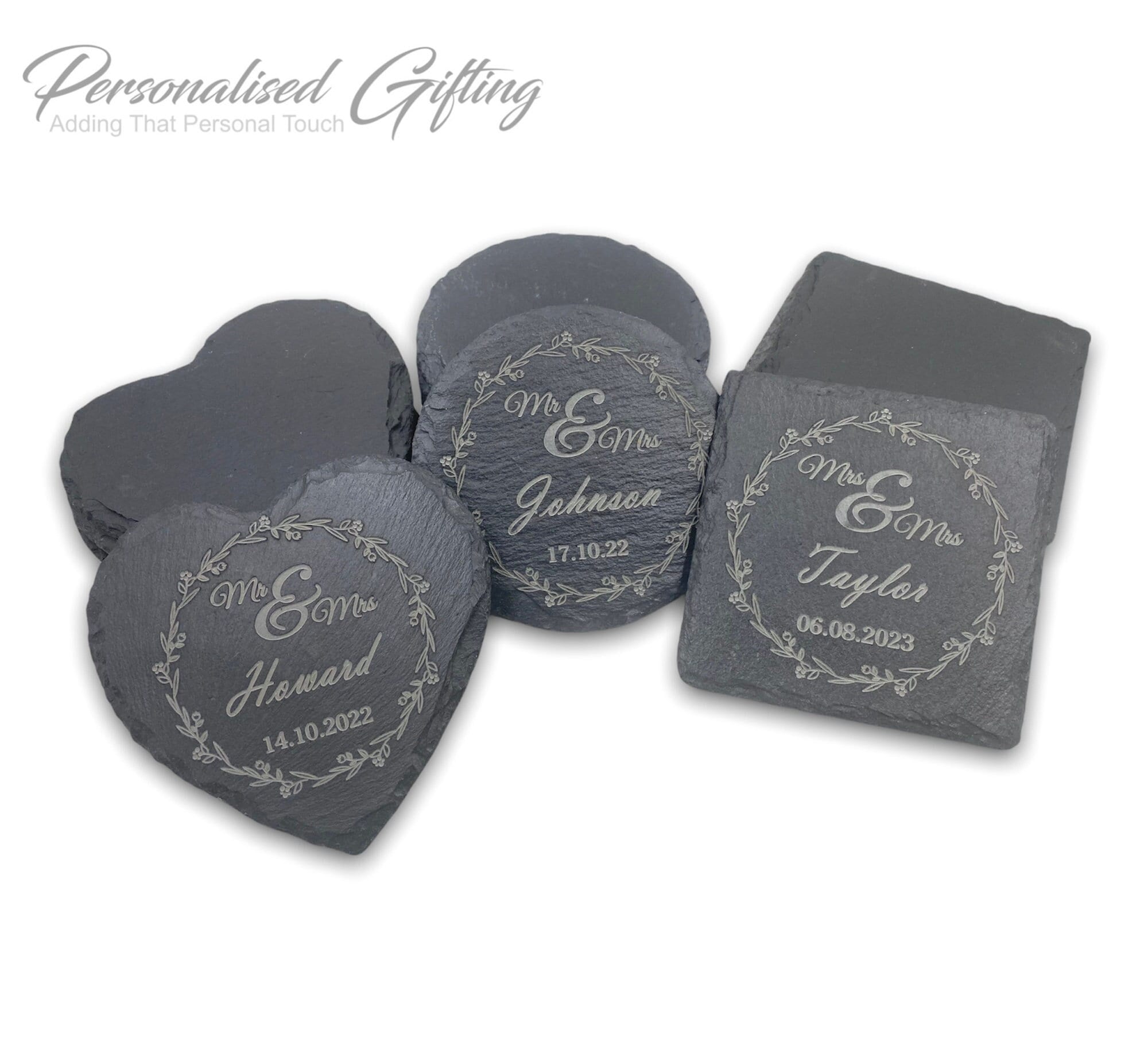 "Square Round and Heart Slate Coasters With Cushion Pads (10cm) These Square & Round Slate ...