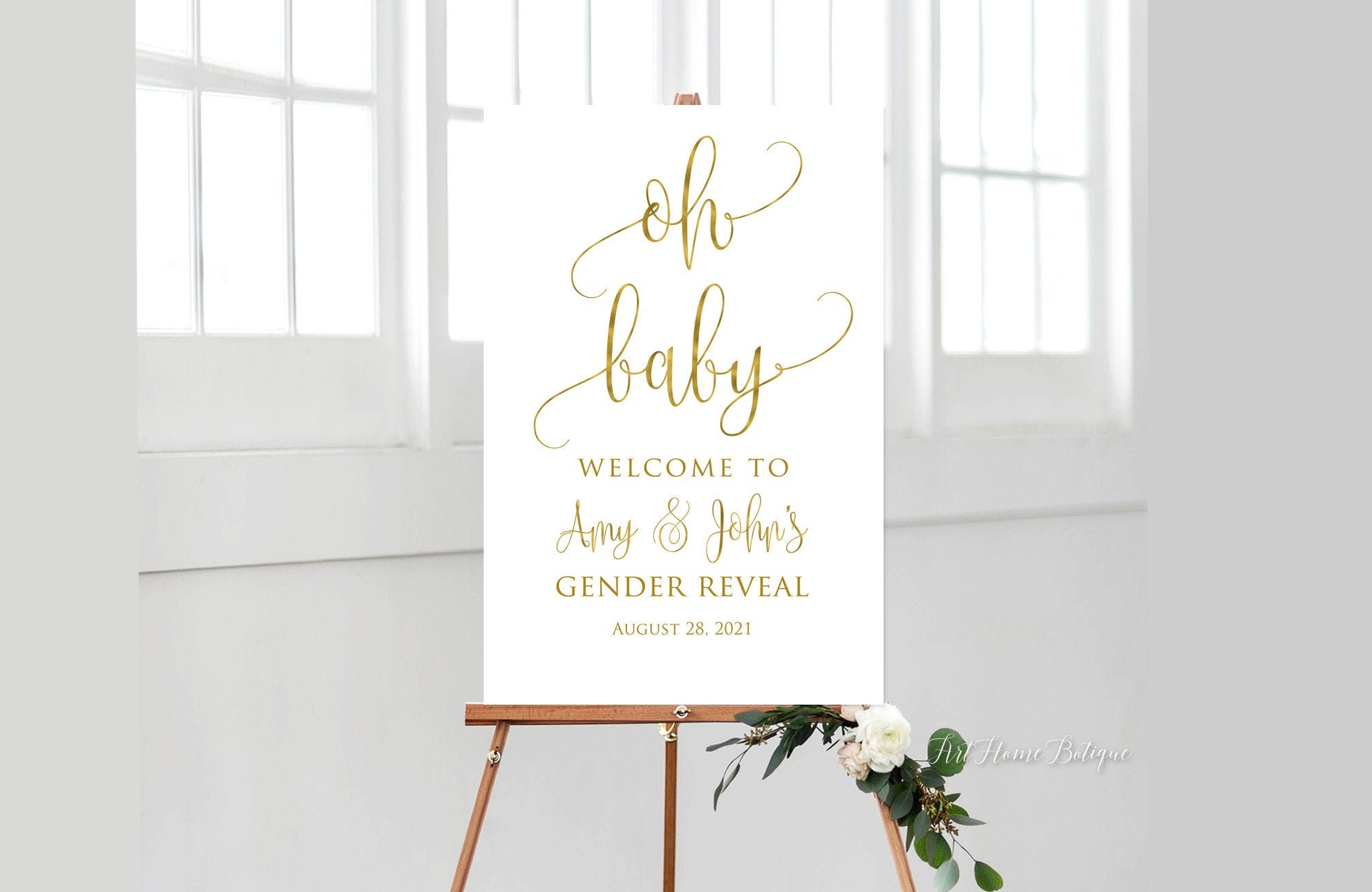 "Gender Reveal Welcome Sign, personalized with your party details. This listing is for a digita...