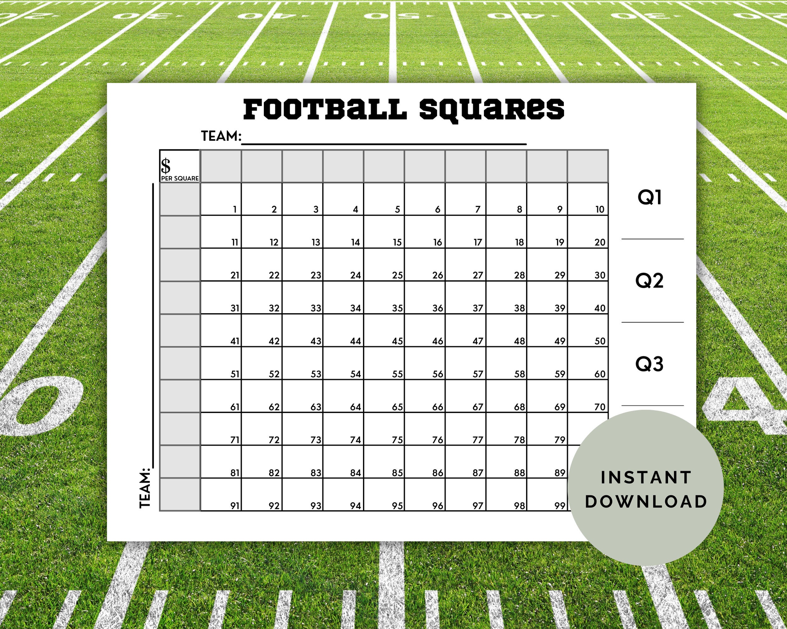 Football Squares Printable Game, 100 Square Football Board, Footbal...
