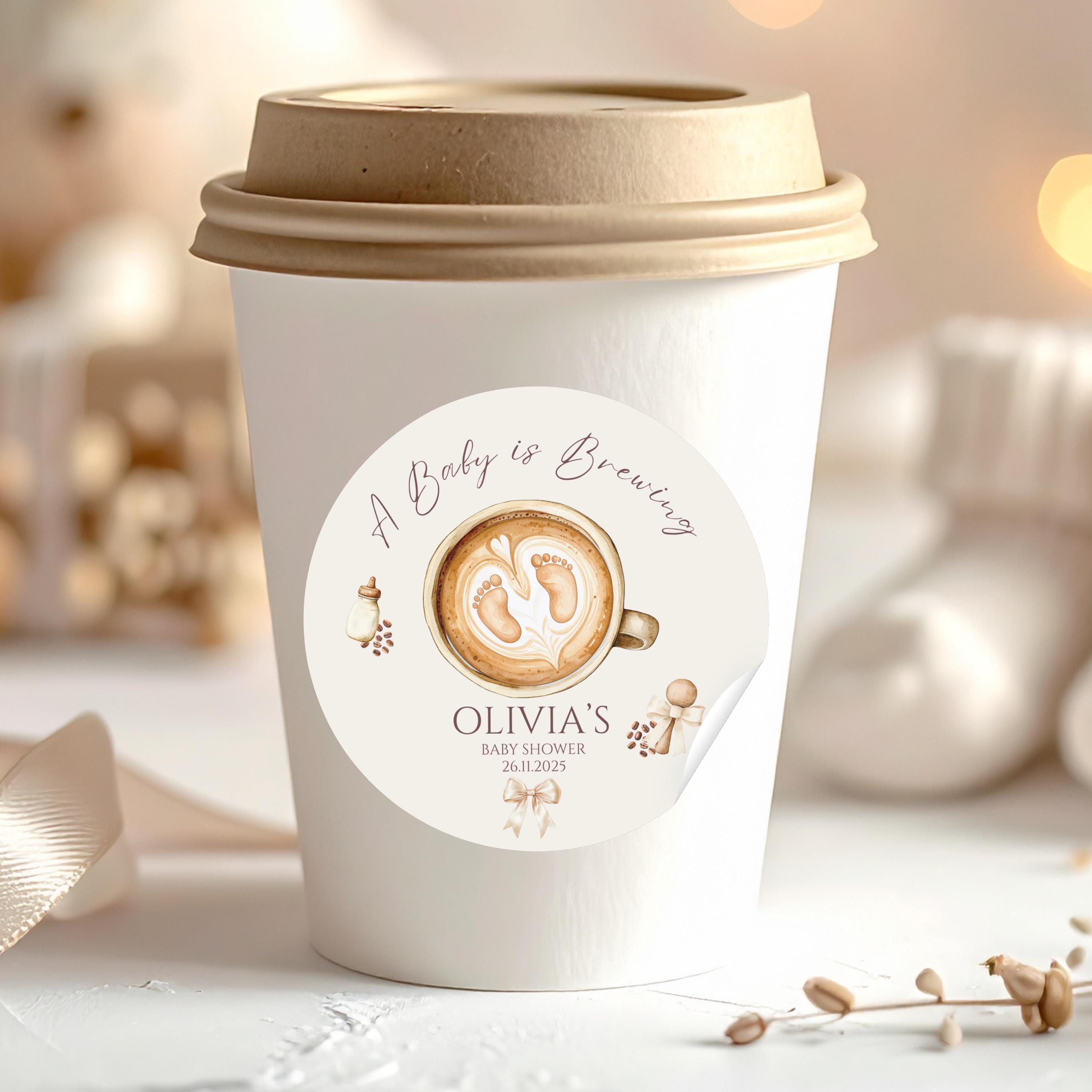 A Baby Is Brewing Baby Shower Stickers. Professionally printed on waterproof, high quality sticker m...