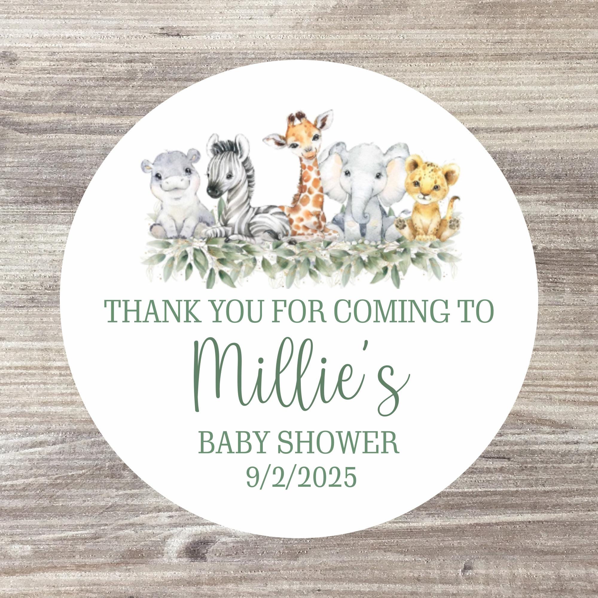 24 x Safari Baby Shower Stickers, Personalised Baby Shower Favour, ...