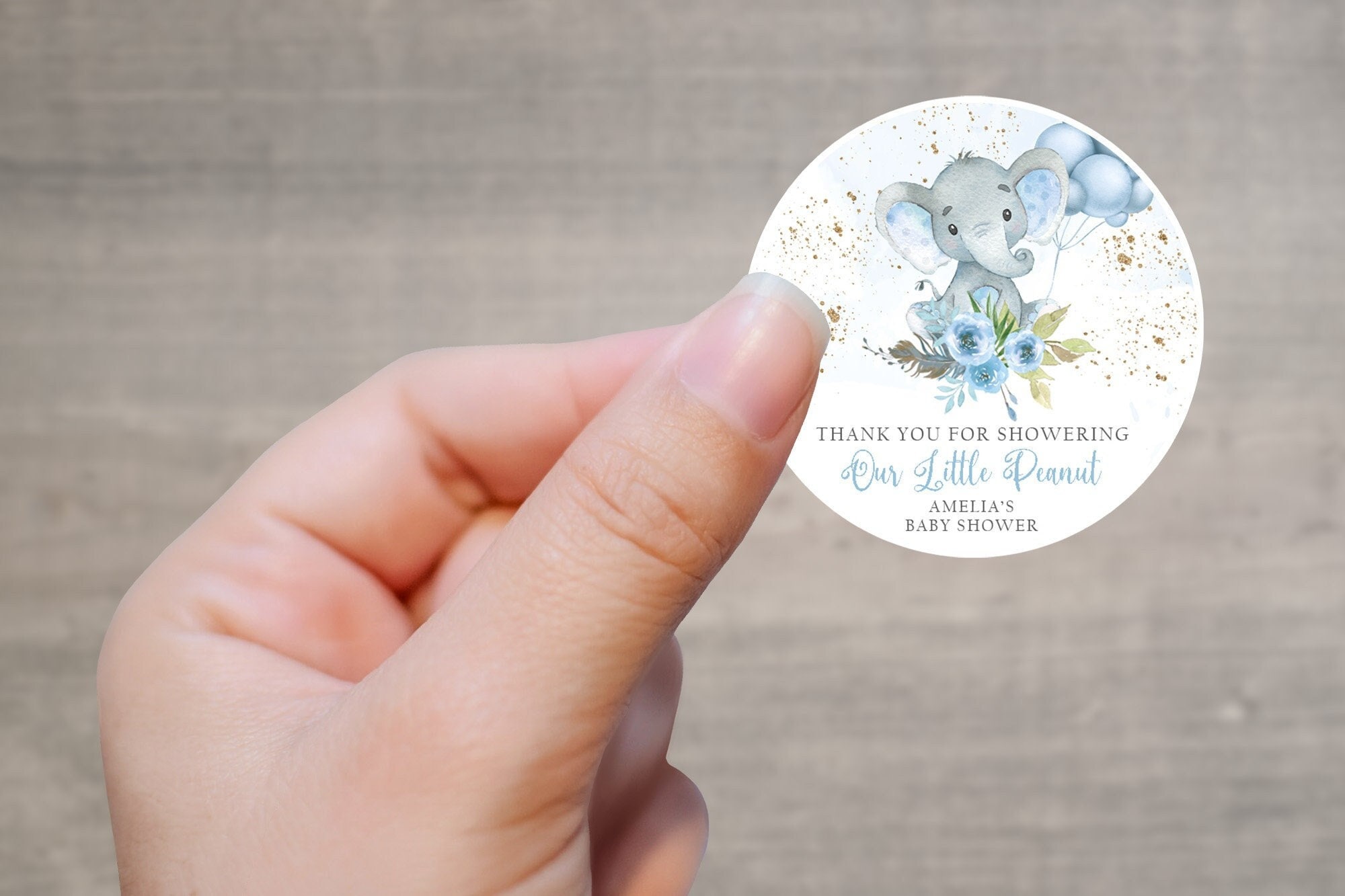 Blue Elephant Baby Shower Favor Labels, Baby Boy Elephant Baby Show...