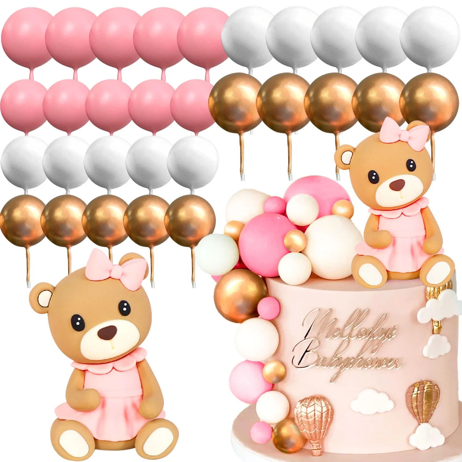 20 Pcs Ball Cake Topper Decorations Mini Balloons Cake Topper Sticks Gold Balls Cake Picks Cake Topp...