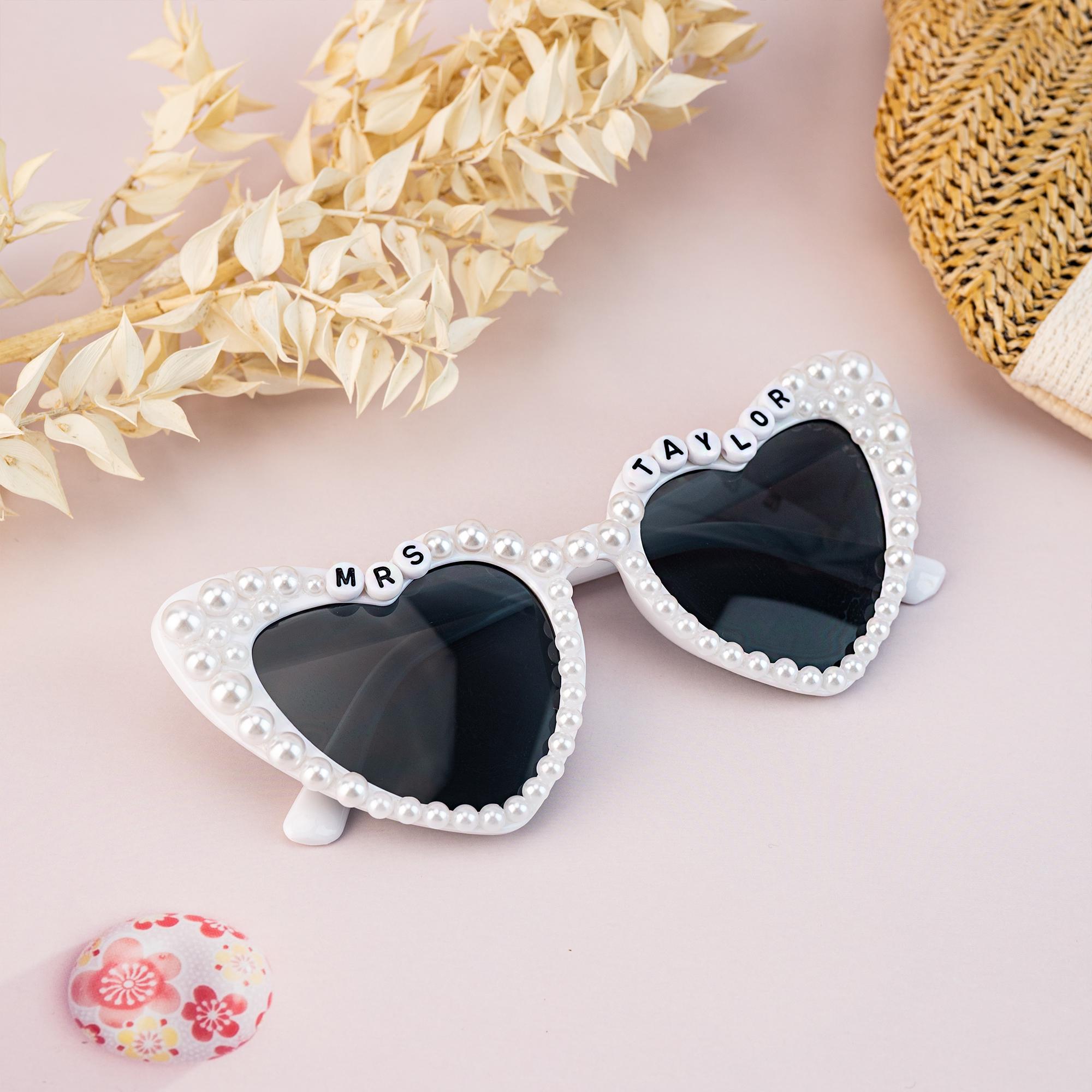 Personalized Bride to Be Heart Sunglasses, Pearl Sunglasses, Bride ...