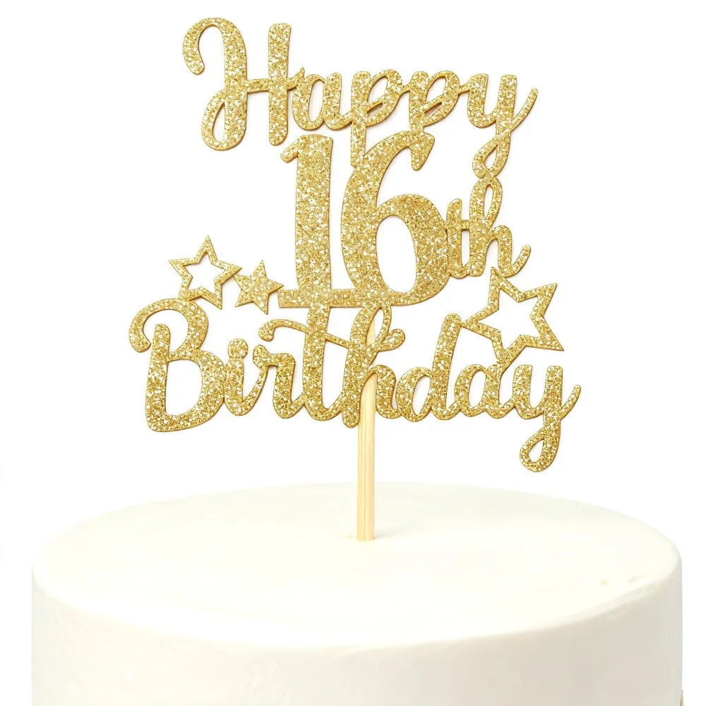 1 Pack Golden Sweet Teenager 16 Cake Topper 16th Birthday Cake Pick...