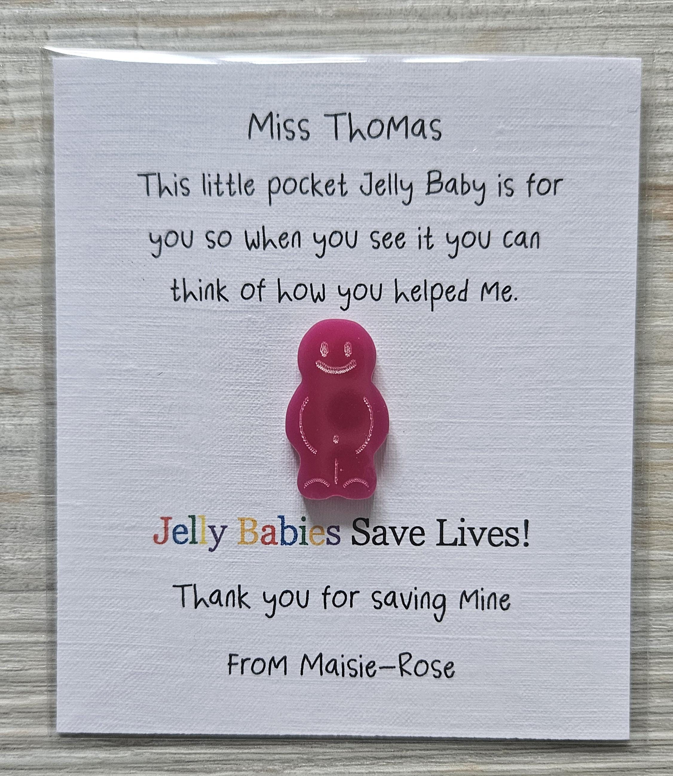 "Keepsake cards with 2.5cm Jelly Baby acrylic pocket hug. Perfect thank you gift for anybody wh...