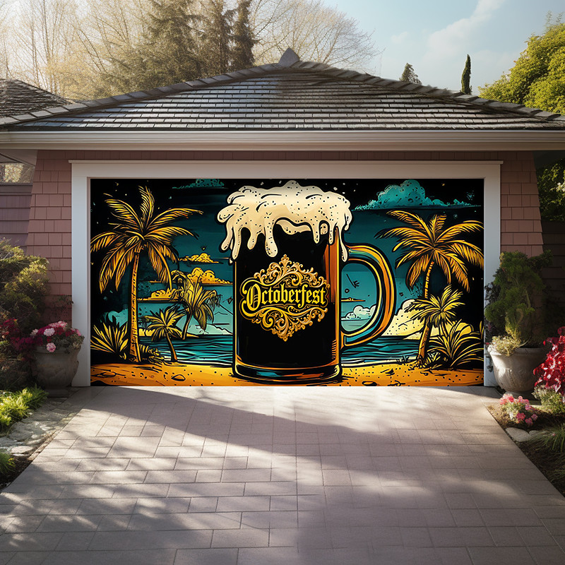 Oktoberfest 2025 Outdoor Garage Door Cover Banner Beer Tropical Bea...