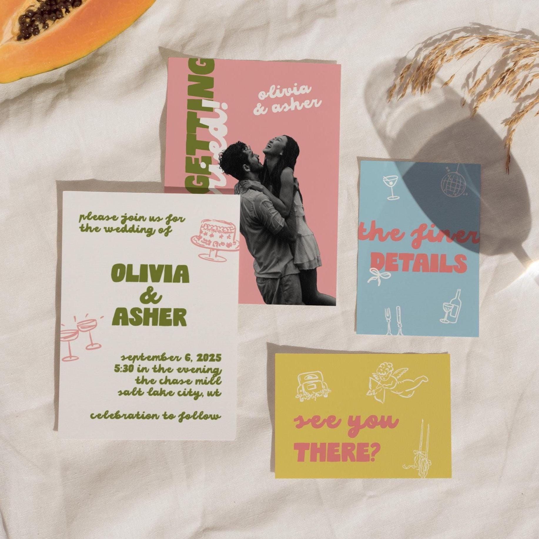Colorful Wedding Invite | Retro Wedding Invitation | Unique Wedding...