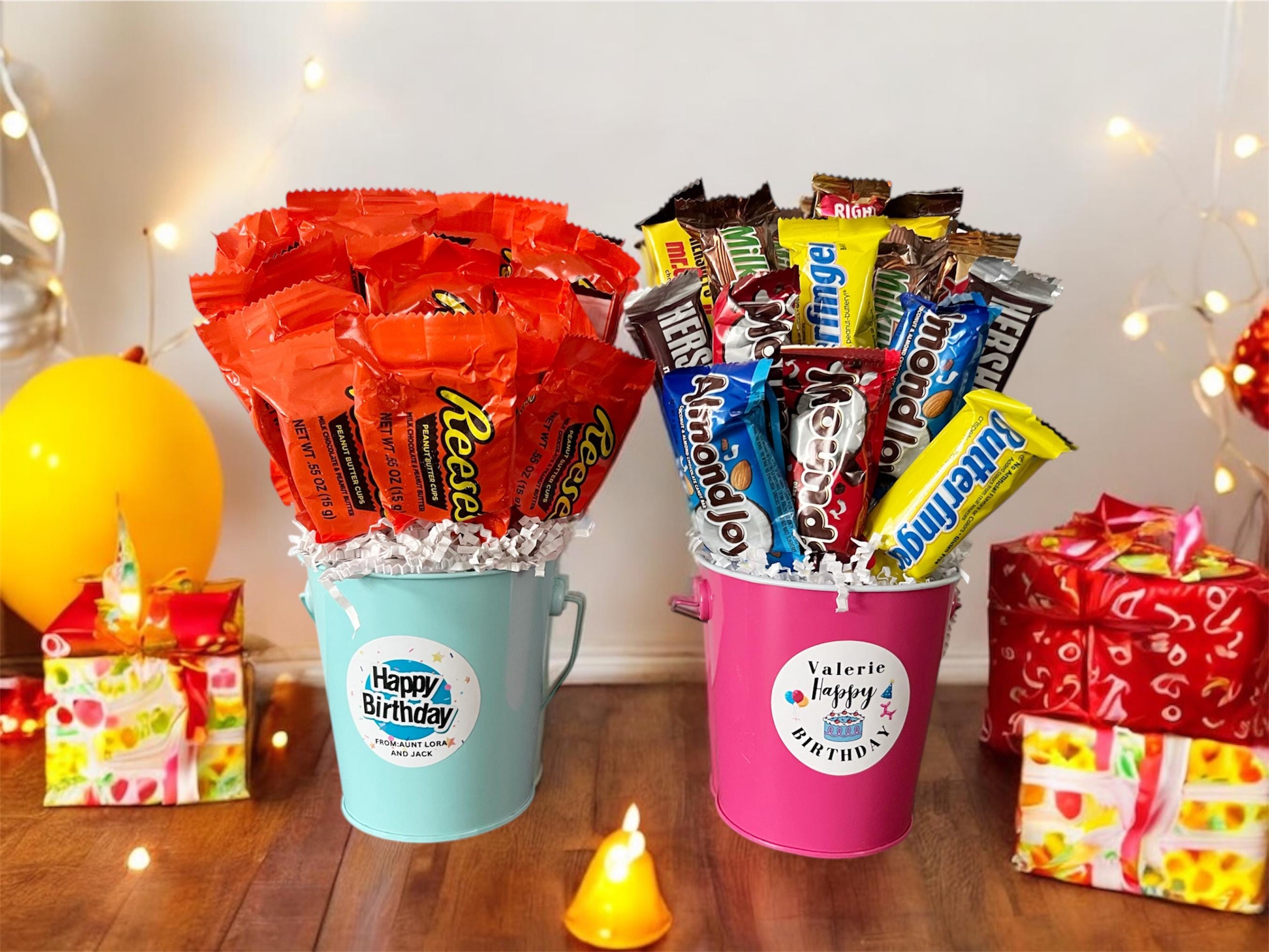 "Personalized Birthday Candy Bucket * Sweet Birthday Surprise! Make birthdays extra fun with ou...