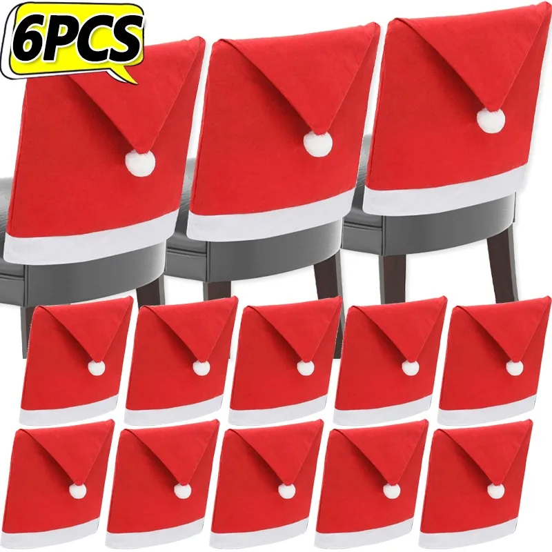 1-6PCS Christmas Decor Chair Covers Santa Claus Red Hat Chair Cap Kitchen Dining Chair Slipcovers Se...