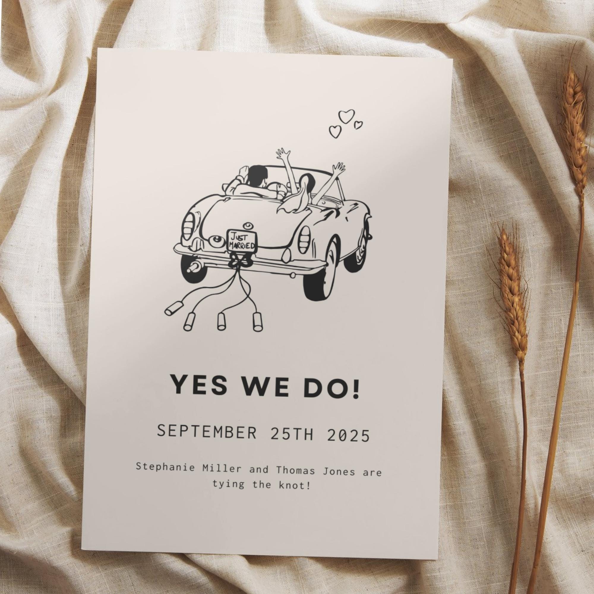 Announce your special day with this cute hand drawn Wedding Invitation design, featuring a charming ...