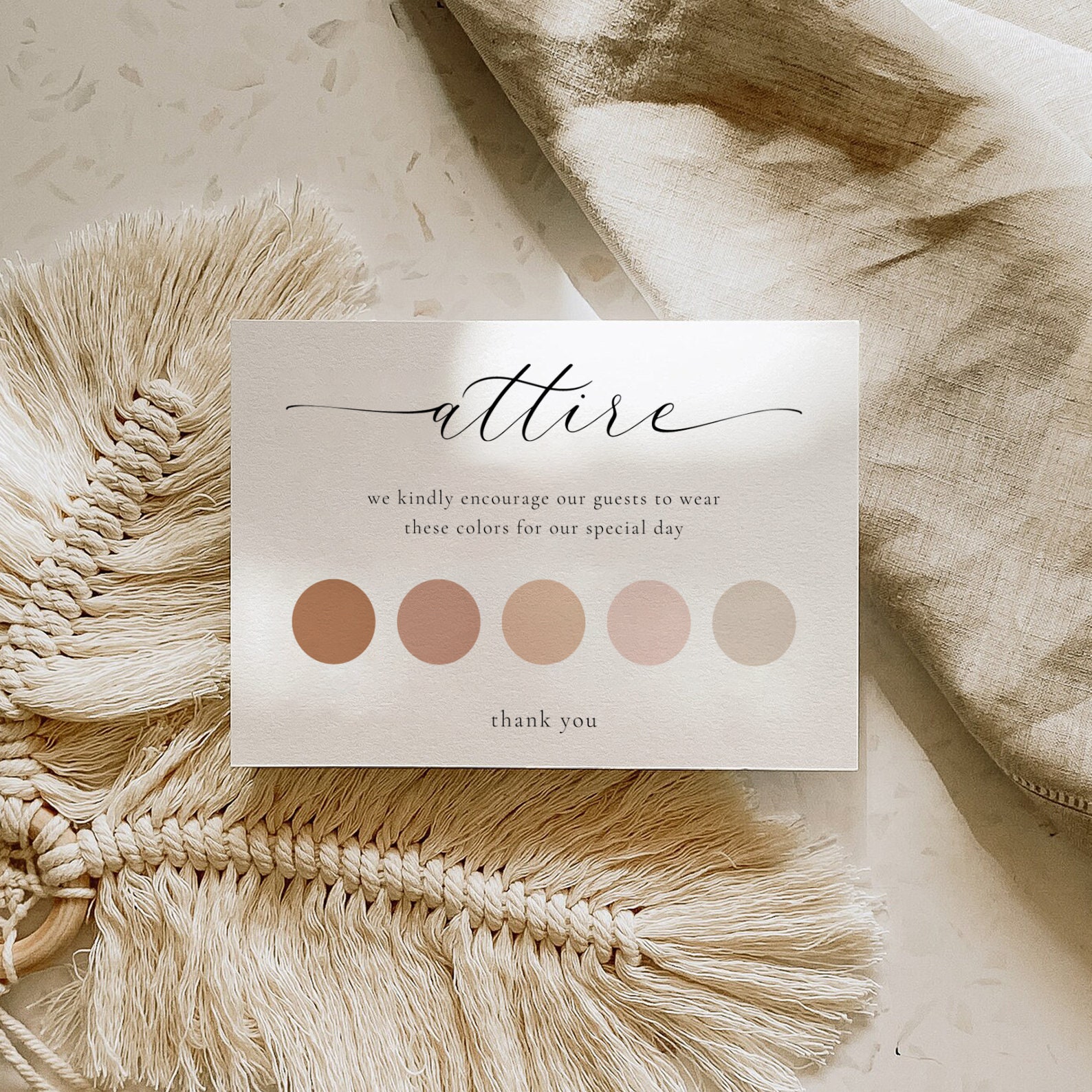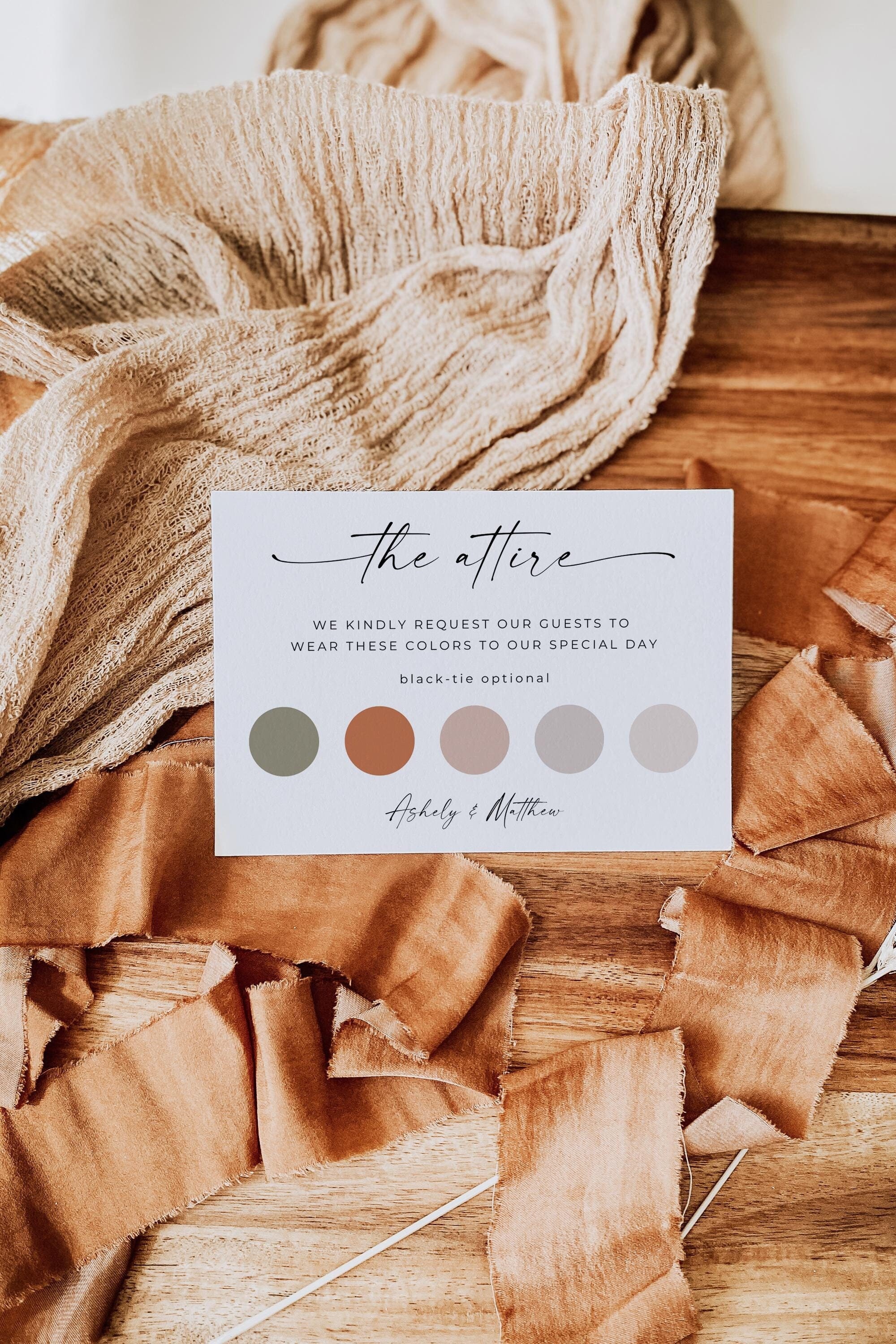 "Wedding Attire Card Template Elegant Guest Dress Code Insert Card Wedding Color Palette Insert...