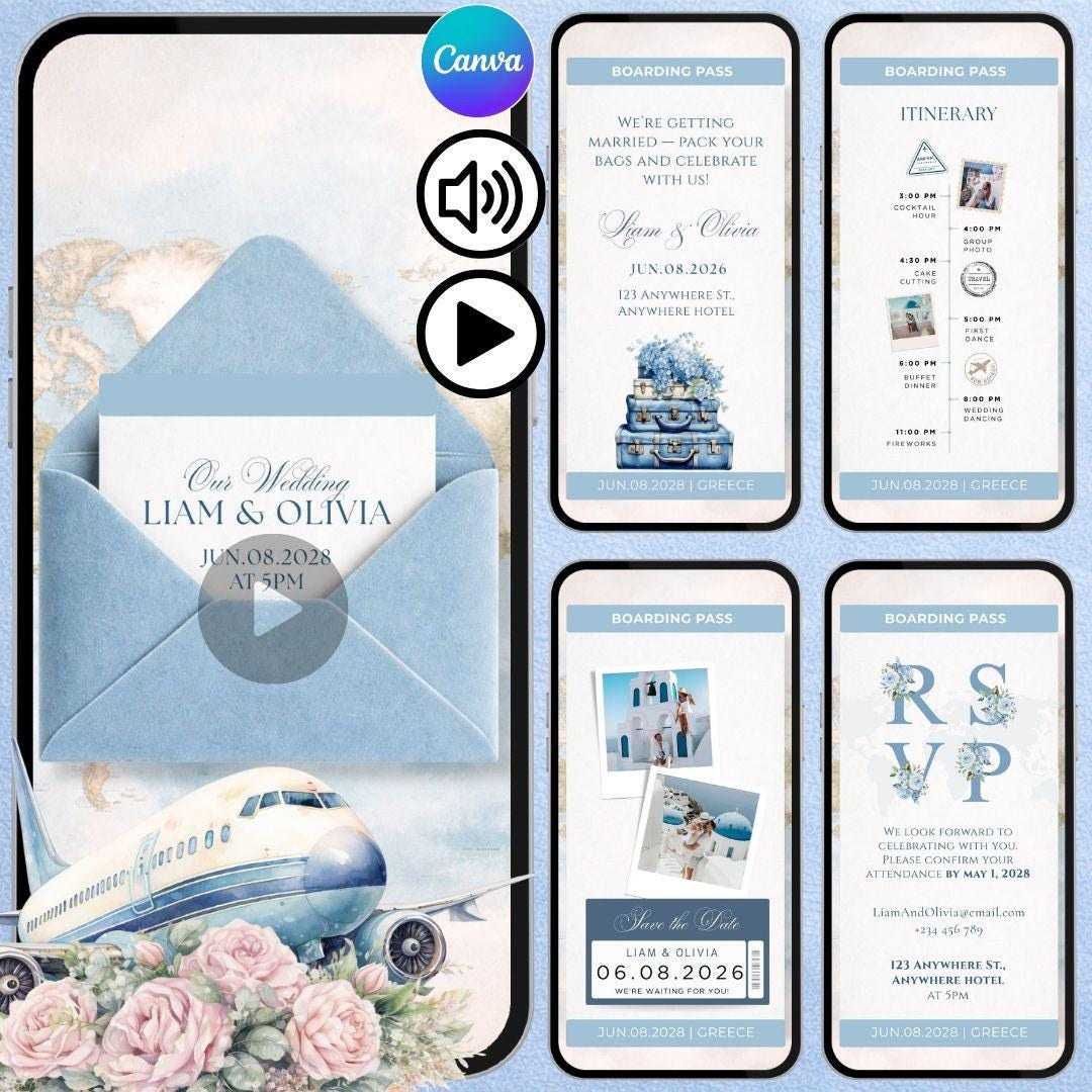 Santorini wedding invitation digital Greece save the date wedding invitation video template Boarding...
