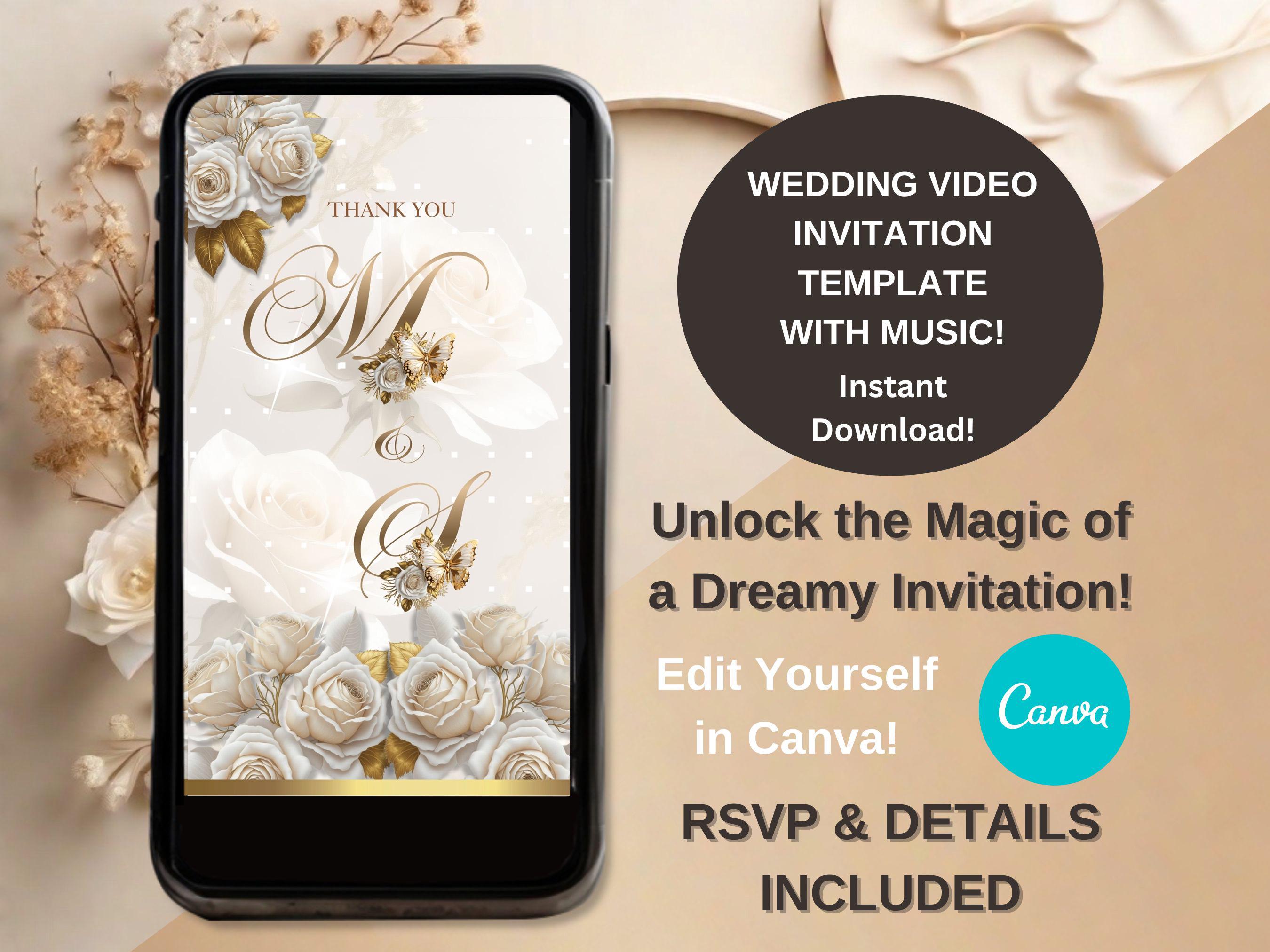 "Elevate your wedding invitation game with our exquisite Canva Wedding Video Invitation Templat...
