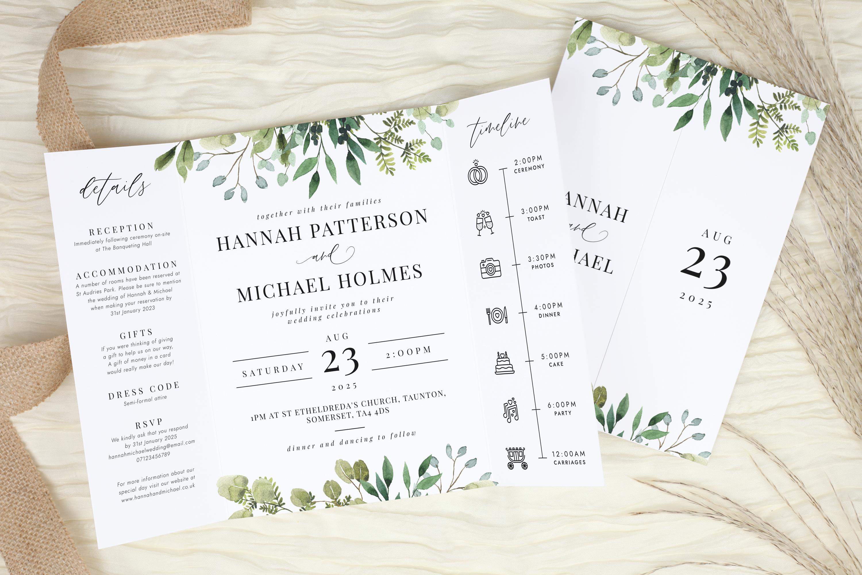 Greenery Wedding Invitation, Gatefold Wedding Invitation, Simple We...