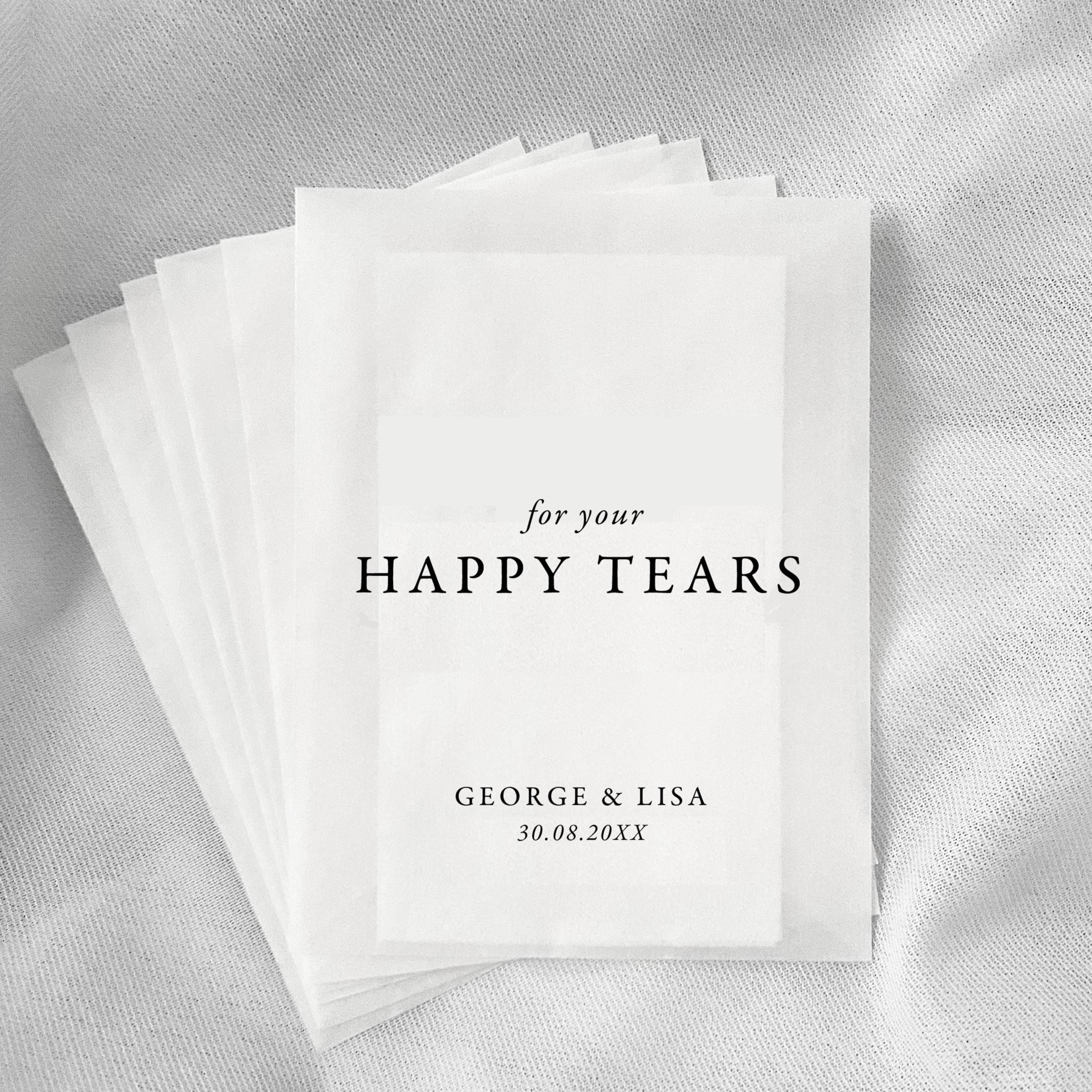 Wedding tissues 25, Happy Tears wedding tissues - Personalised wedd...