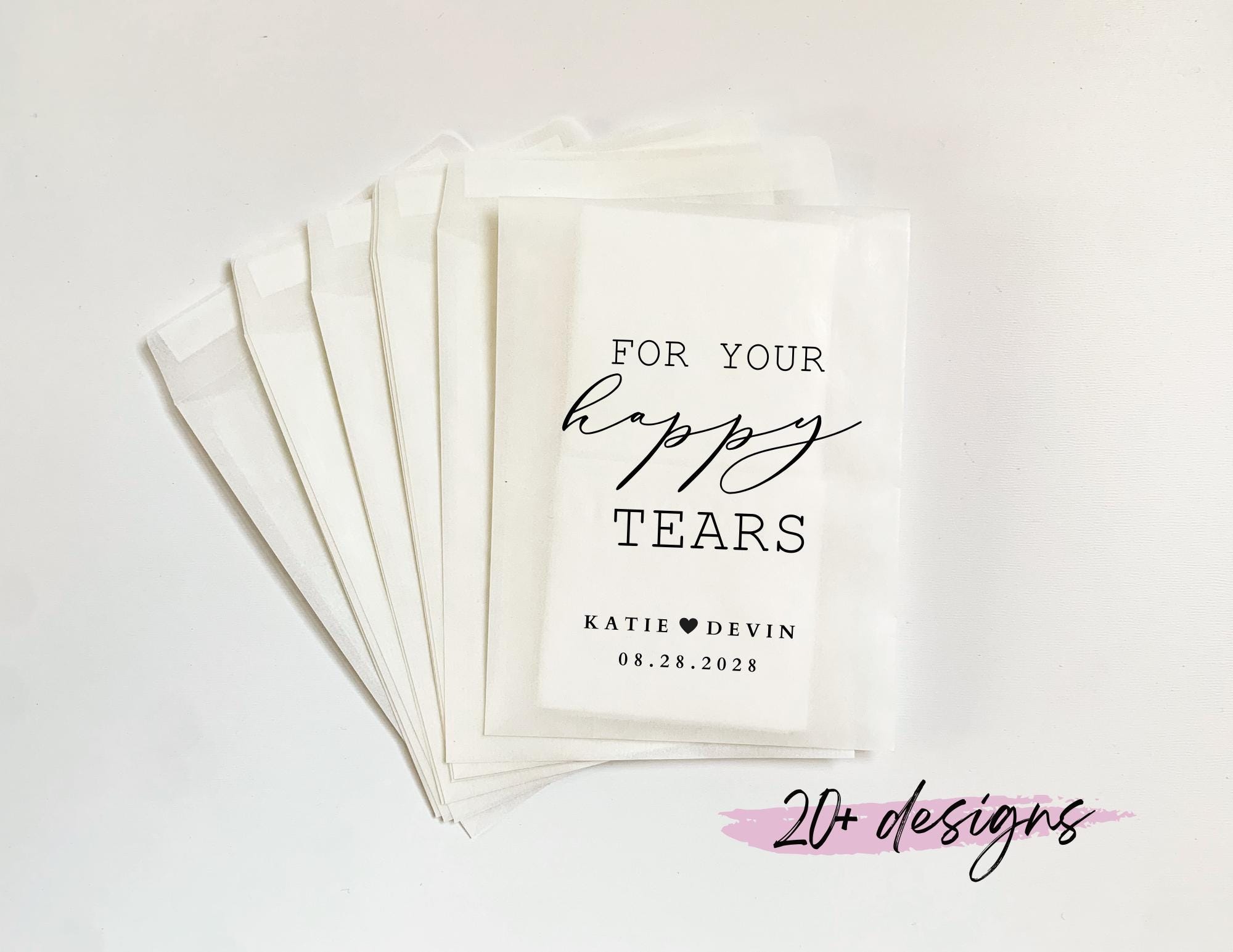 **20 PERSONALIZED WEDDING TISSUE PACKS FOR EACH QUANTITY** PEEL & SELF-SEALED ENVELOPES MEASURE ...