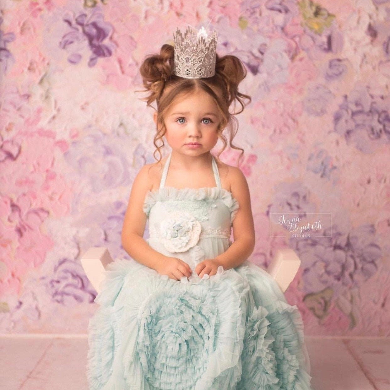 Silver lace birthday crown in a tall princess style -- perfect for 1st birthdays, cake smash photos,...