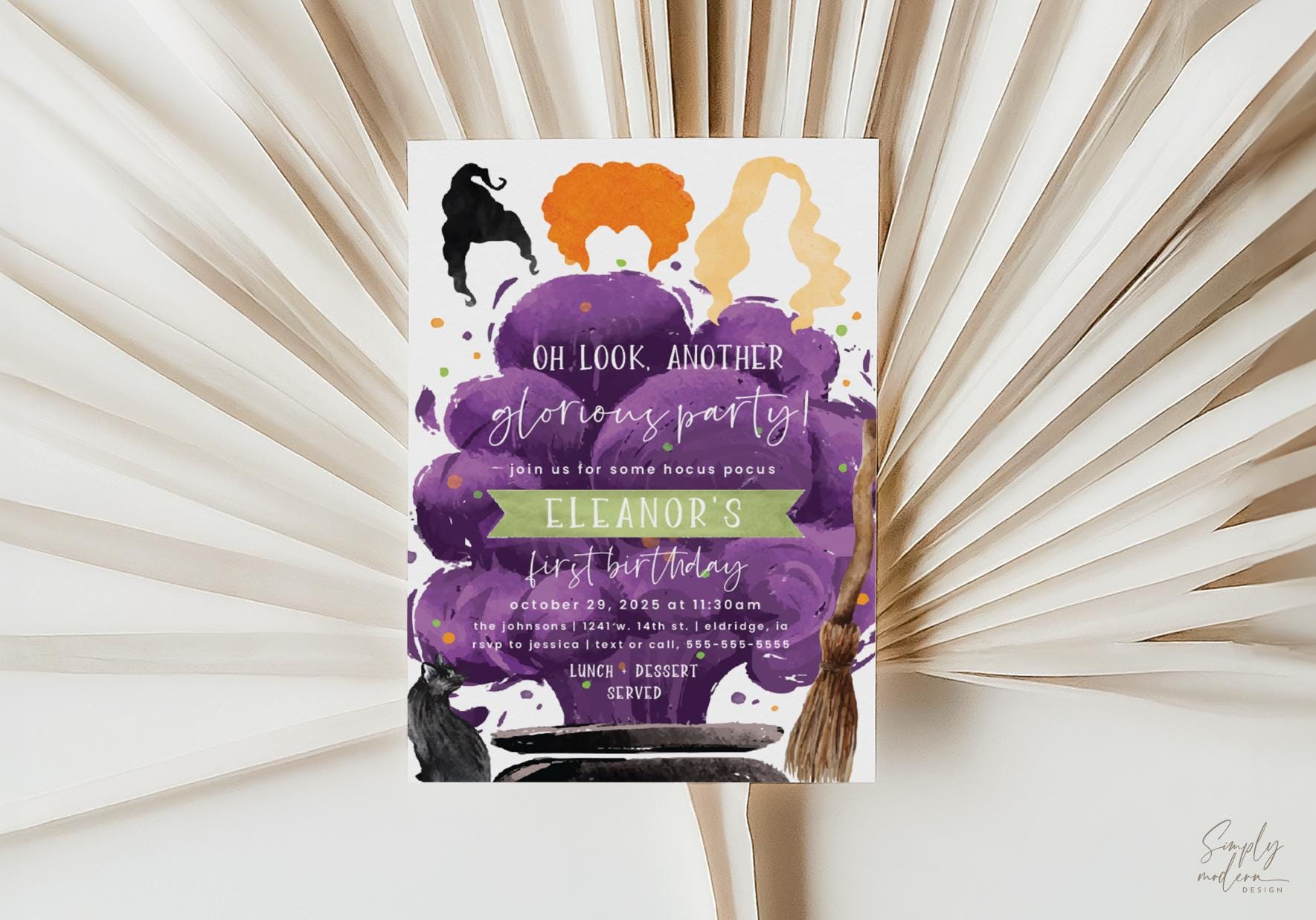 halloween birthday invitation, hocus, witch halloween party, witche...