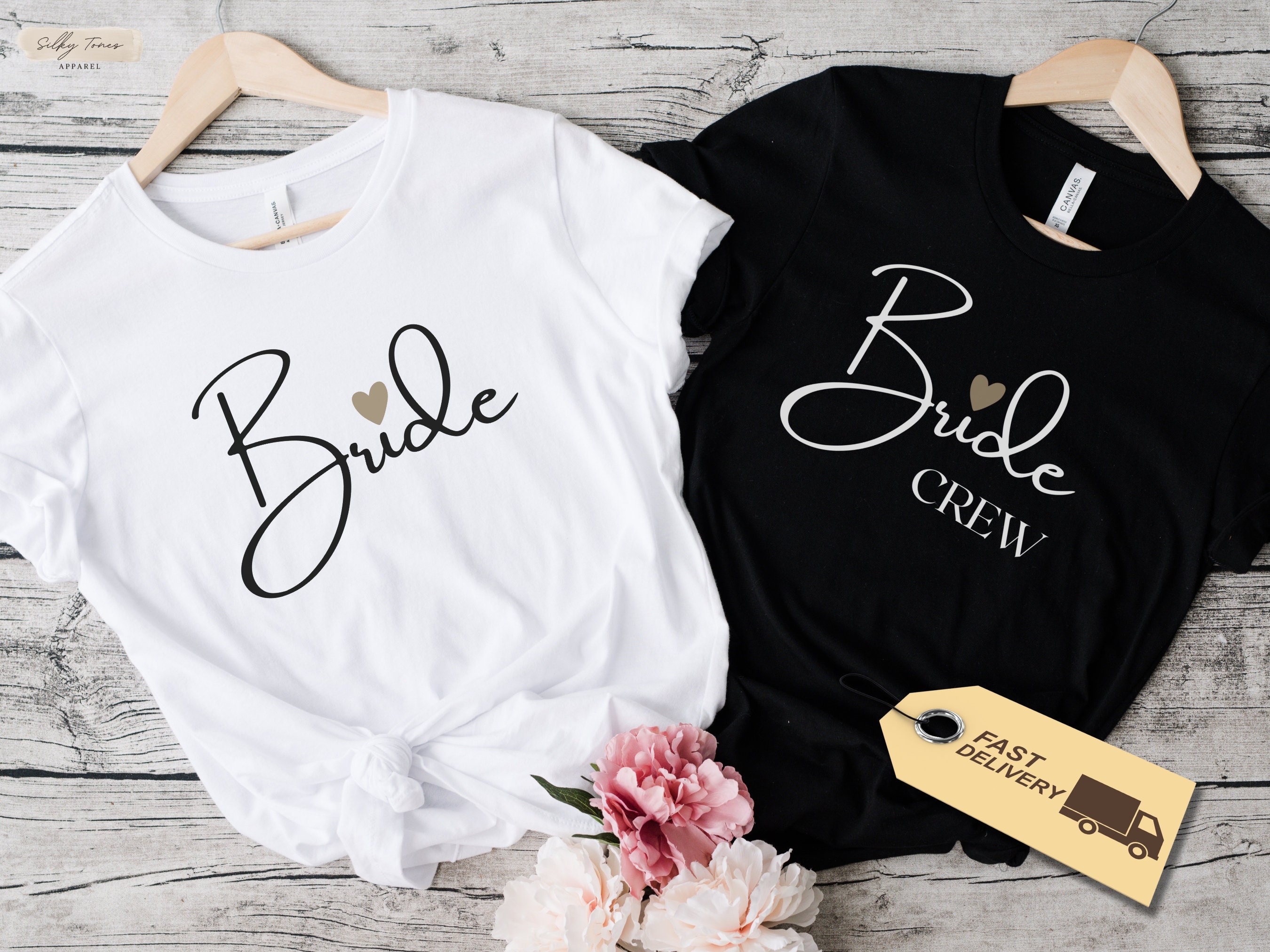 Simple and modern bachelorette party bride and crew shirts for woman. Our minimalist engagement t-sh...
